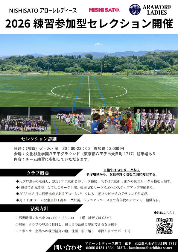 その趣旨に共感した立川市の企業「株式会社NISHI SATO」からの支援を受け、選手の環境づくりとともに女子サッカーの普及活動にも力を入れています。