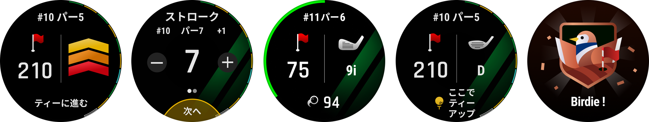 プレー時間を把握できるよう、各ホールのペース配分がわかりやすいプレーペースタイマー(緑のカウントダウン)を搭載。ティーショットを打ったことを検知すると、プレーペースタイマーがスタートします。