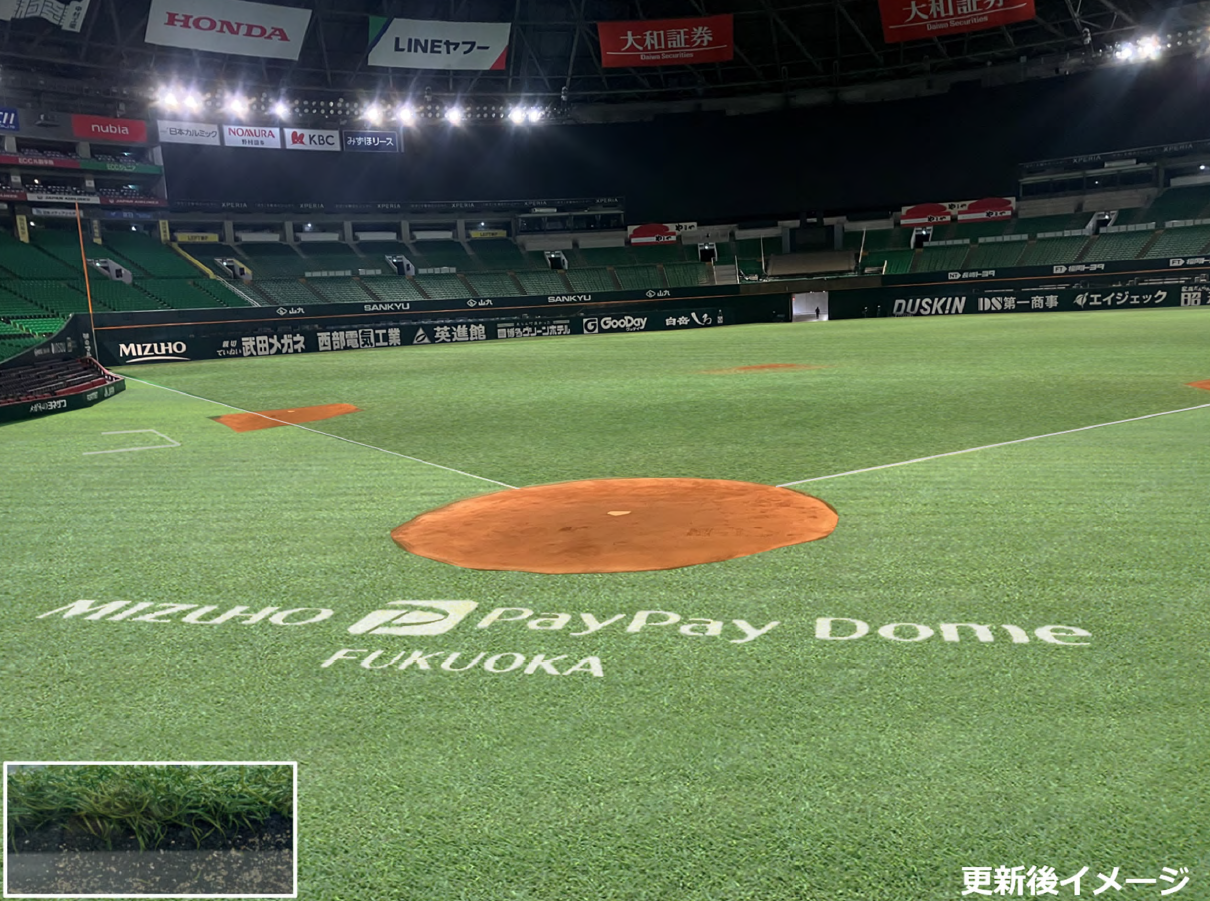 ミズノの野球専用人工芝「MS CRAFT BASEBALL TURF(エムエスクラフトベースボールターフ)」は、福岡ソフトバンクホークスの本拠地「みずほPayPayドーム福岡」で2026年シーズンから使用されます。「みずほPayPayドーム福岡」でミズノ製人工芝が導入されるのは初めてです。