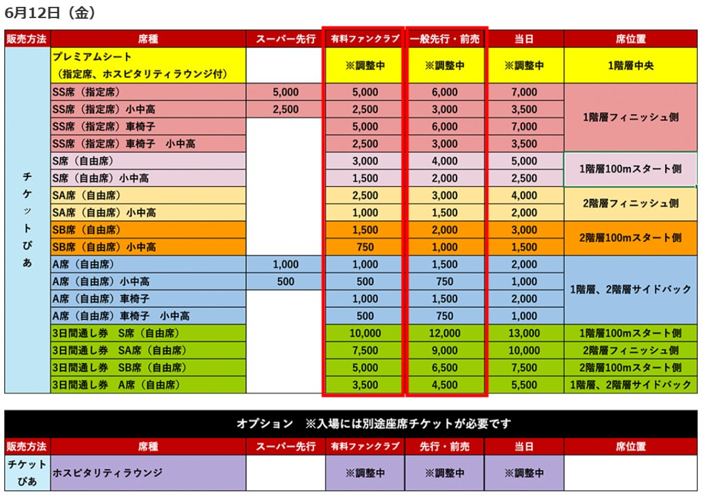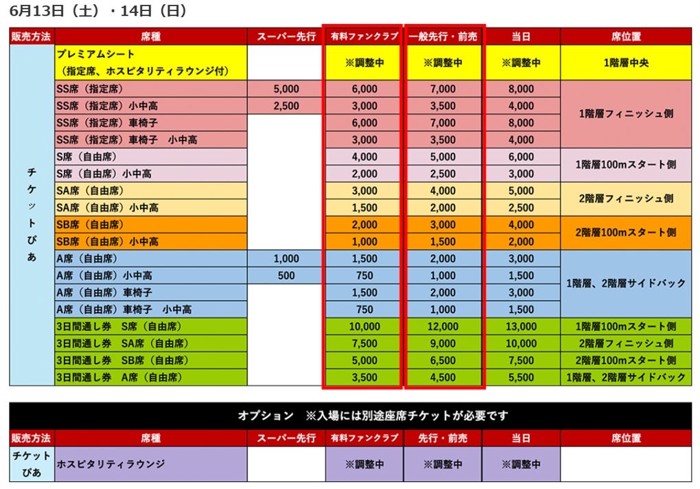 販売席種・料金: