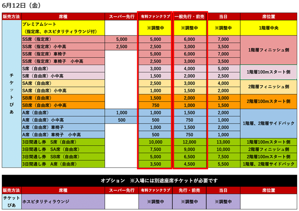 販売席種・料金: