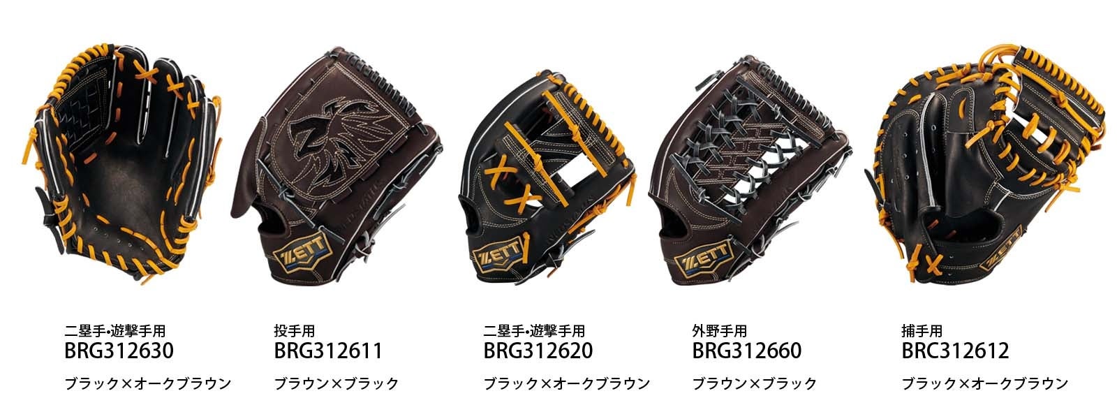 投手用、二塁手・遊撃手用(BRG312630)、オールラウンド用、外野手用/右投用(LH)・左投用(RH) |