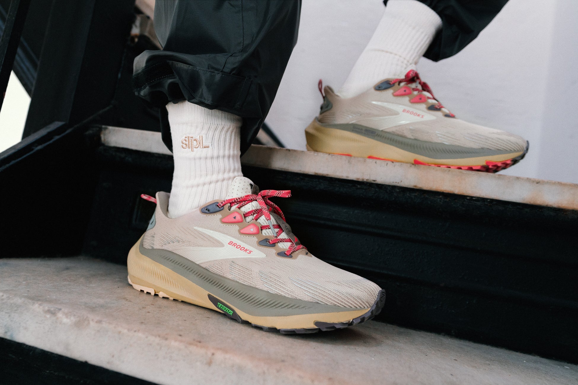 今回のコラボレーションは、BROOKSが培ってきたトレイルランニングのDNAと、STAPLEが象徴する都市の感性が融合した特別なプロジェクトです。昨年3月にリリースされた第一弾に続き、BROOKSとSTAPLEが再びタッグを組み、ブランドのアーカイブを象徴する「Cascadia 1」と、日本での本格展開に先駆けて登場するトレイルモデル「Ghost Trail」を現代的に再構築しました。