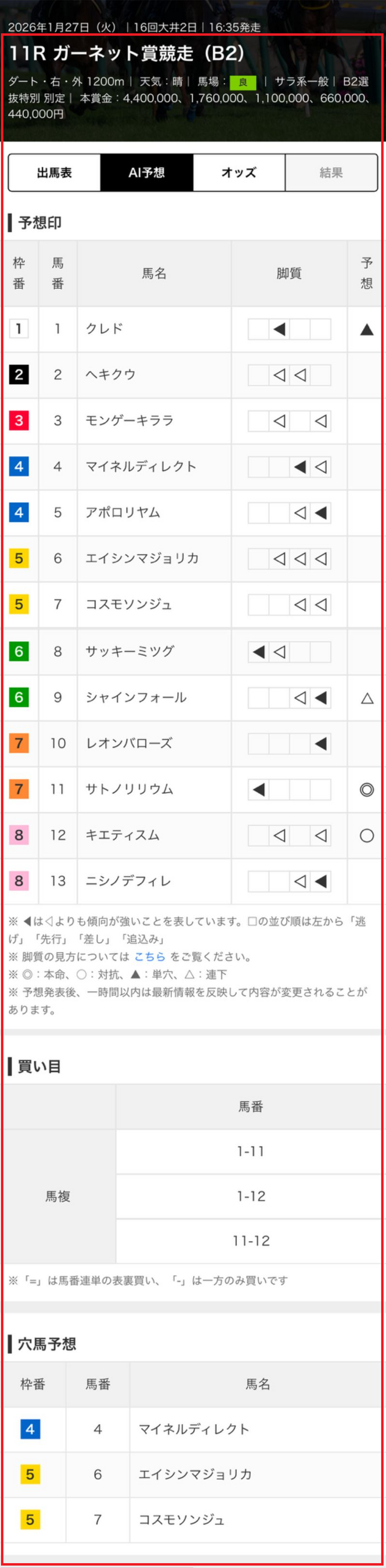 AI が推奨する具体的な買い目と、その予想に至った根拠データを可視化し、初心者から上級者まで愉しめる情報を提供します。