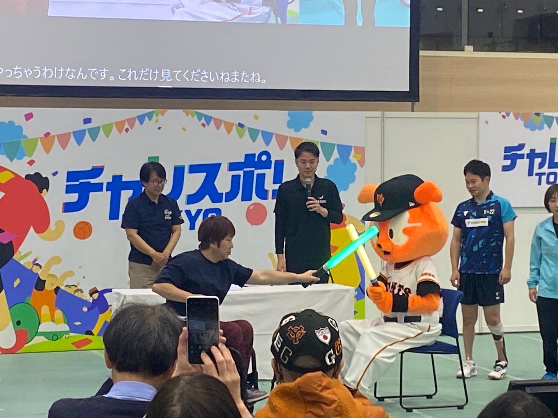 また、会場内のステージイベントでは、お笑い芸人のスギちゃん、元フィギュアスケート選手の高橋成美さんらが見守る中、車いすバスケットボール元日本代表の根木慎志さんと、読売巨人軍公式マスコットのジャビットによる対戦企画が実施され、大きな歓声と笑顔に包まれました。スポーツを通じた交流と一体感が会場全体に広がる象徴的なシーンとなりました。