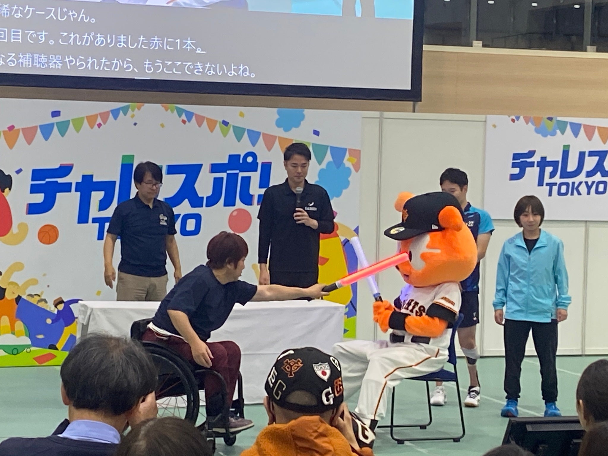 また、会場内のステージイベントでは、お笑い芸人のスギちゃん、元フィギュアスケート選手の高橋成美さんらが見守る中、車いすバスケットボール元日本代表の根木慎志さんと、読売巨人軍公式マスコットのジャビットによる対戦企画が実施され、大きな歓声と笑顔に包まれました。スポーツを通じた交流と一体感が会場全体に広がる象徴的なシーンとなりました。