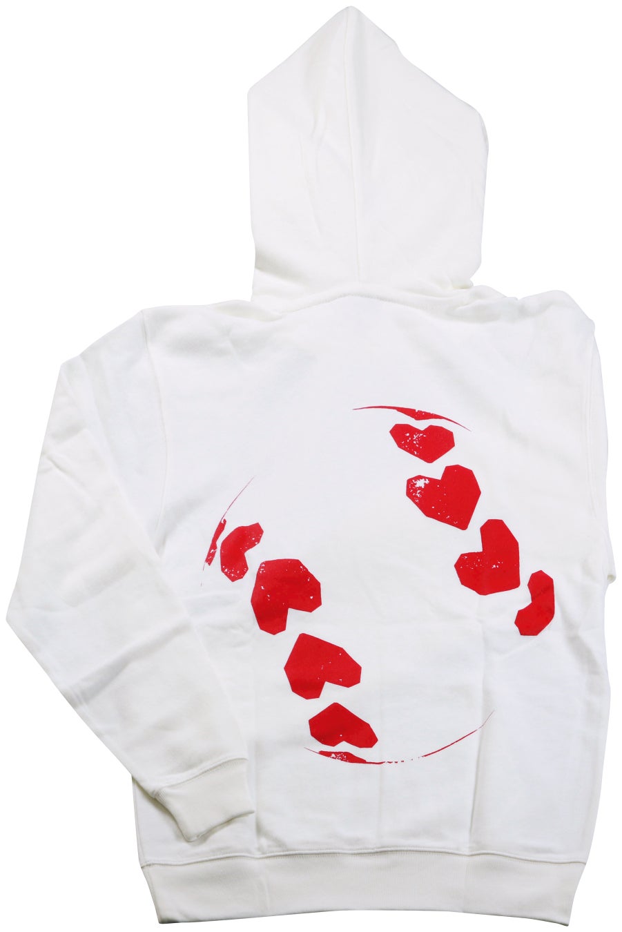 ONE HEARTの文字をあしらったパーカー。胸元にハートと、背中にボールの縫い目をハートで表したデザイン。Lサイズのみですが、オーバーサイズでもかわいく着られます。