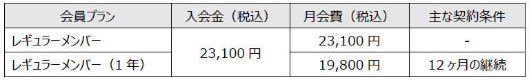 ・会員種別は「レギュラーメンバー」のみ。1年契約によるお得な年割プランもございます。