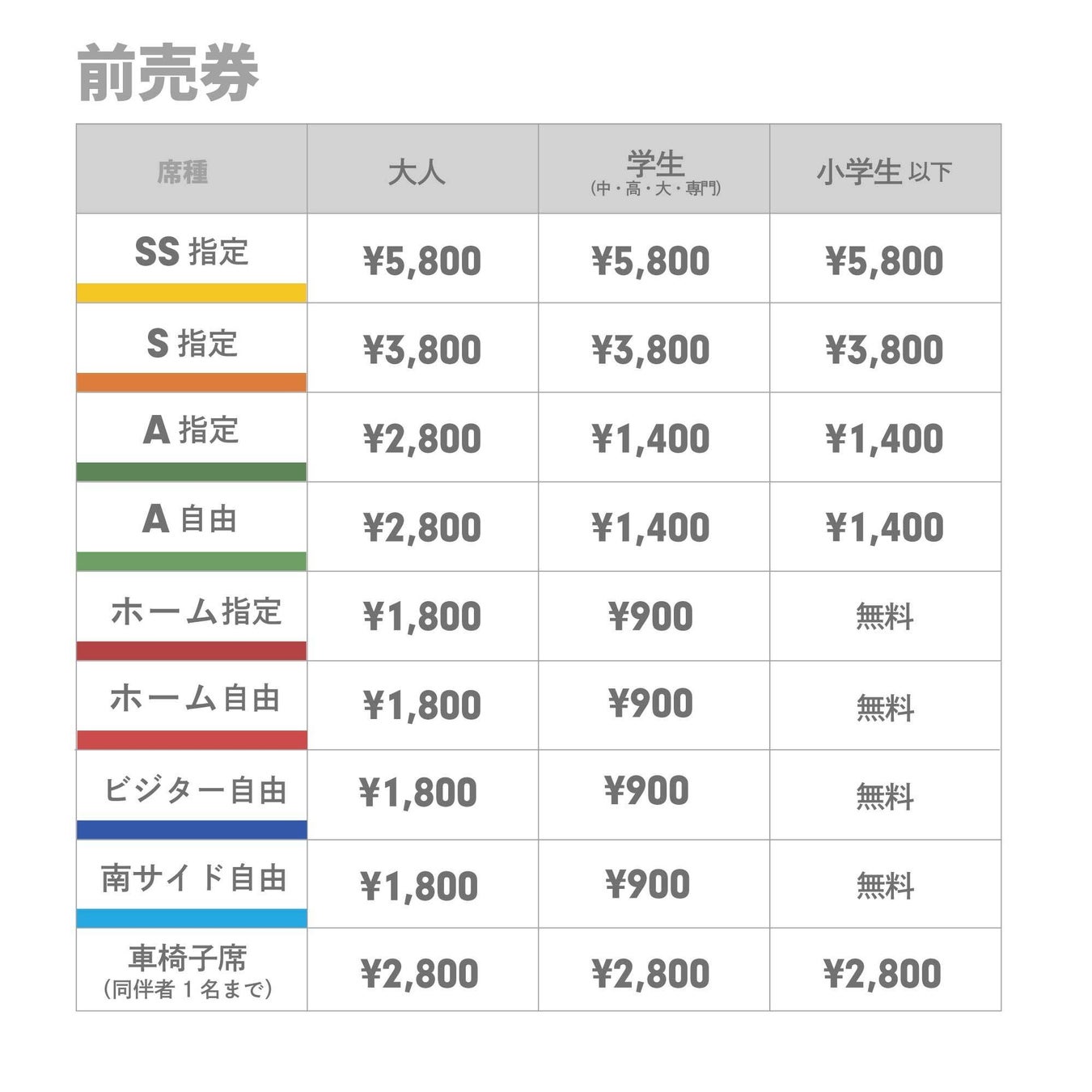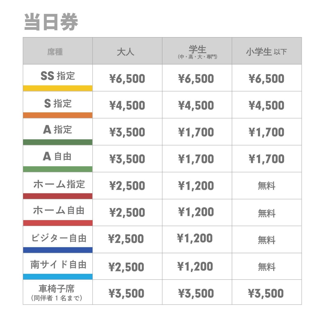 ・座席が必要なく膝上で観戦が可能な未就学児は、大人1名につき1名まで無料です。