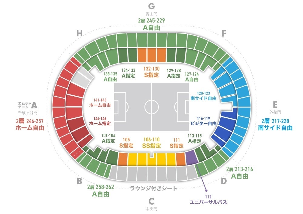 それ以外の座席は、ホーム・ビジターを関係なく応援できる「ミックス」となります。