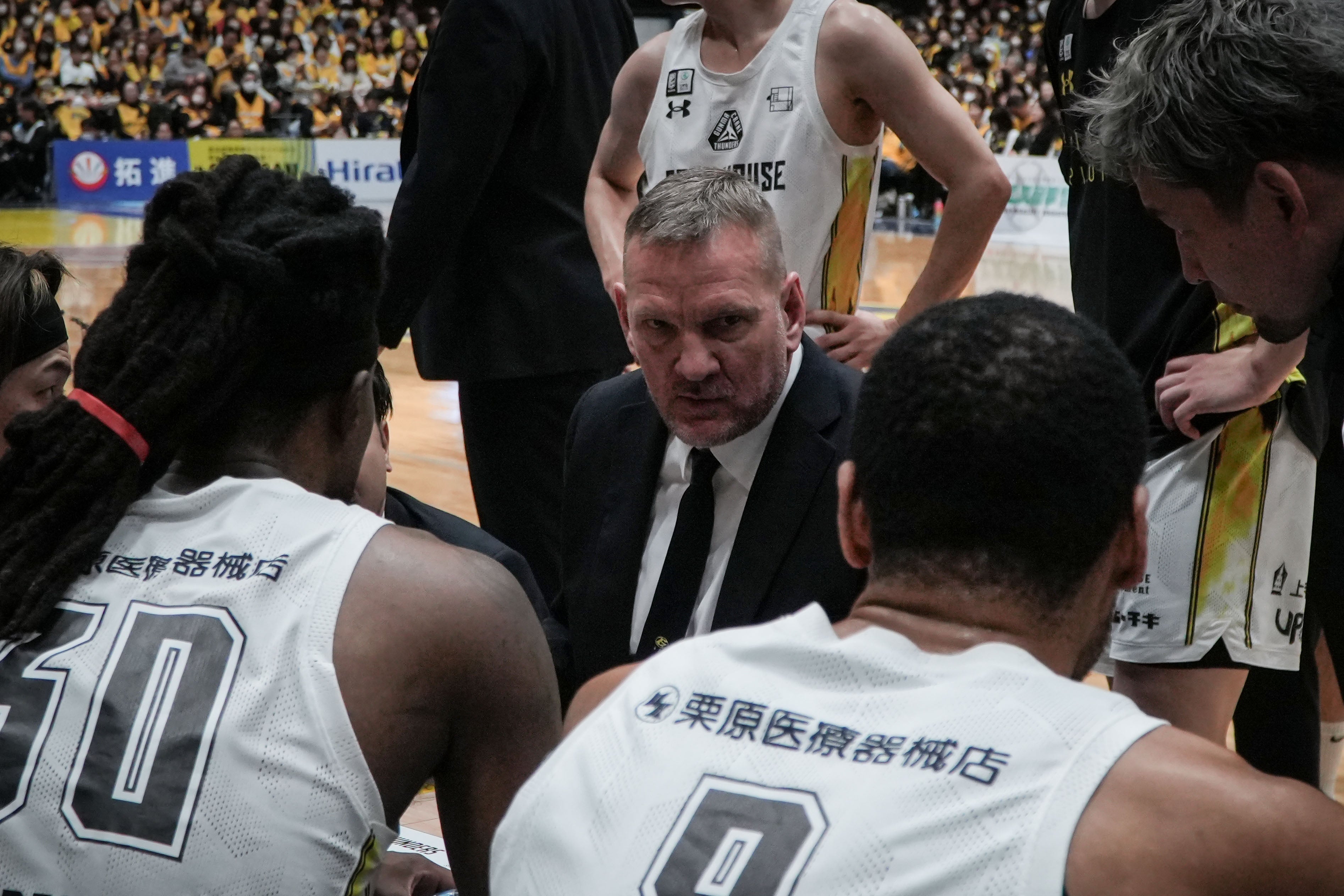 後半に入ってブレックスさんがいいスクリーンをかけてきて、比江島選手やニュービル選手にペイントにアタックされてしまったかなと思います。その時にうちの選手たちが僕らが望んでいるディフェンスの高さにいられなかったと思うので、明日それをどう改善するか考えていきたいと思います。