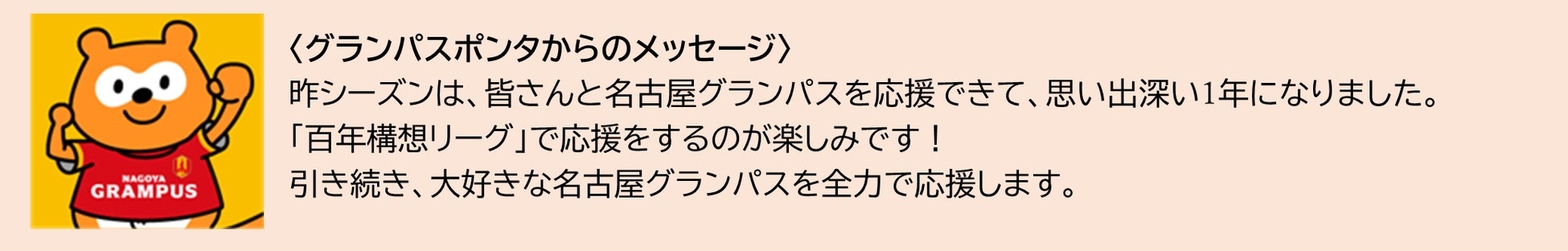 引き続き、明治安田J1百年構想リーグも、サポーターの皆様とともにグランパスを応援し、盛り上げてまいります。
