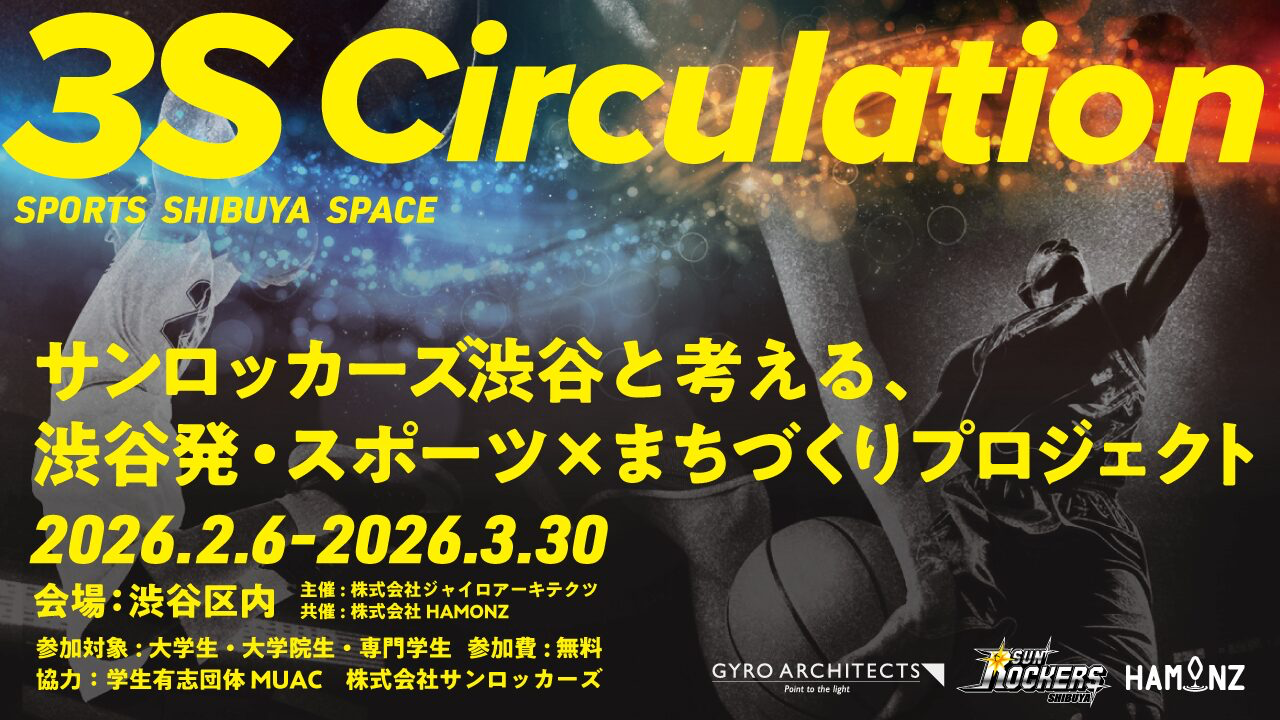 株式会社ジャイロアーキテクツ(本社:東京都渋谷区、代表取締役:山本 剛弘)は、株式会社HAMONZとの共催により、プロバスケットボールB.LEAGUE「サンロッカーズ渋谷」と連携した学生向け実践型プログラム『3S Circulation(スリーエス・サーキュレーション)』を開催いたします。