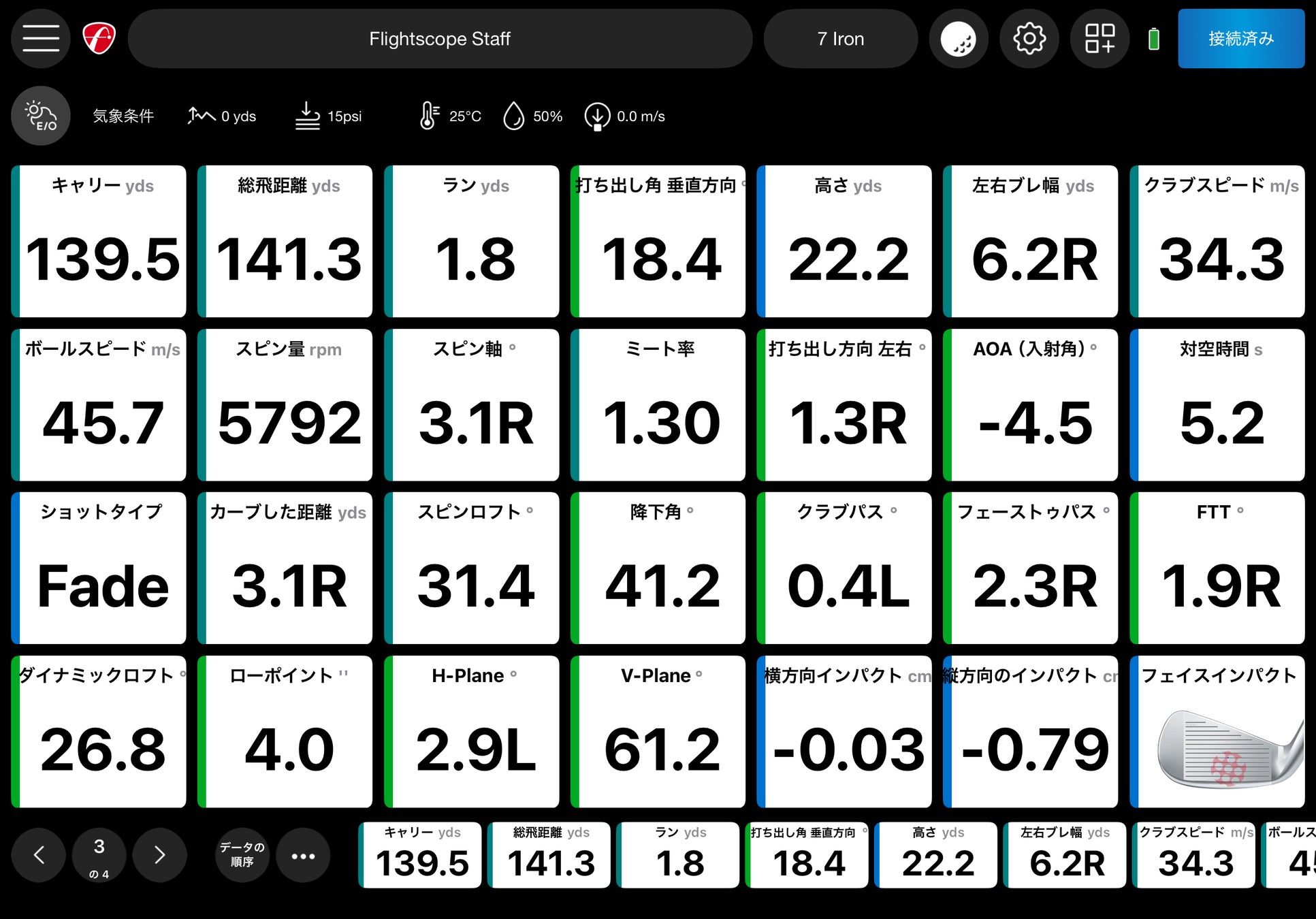 クラブスピード、ボールスピード、キャリー、スピン量、スピン軸はもちろん、