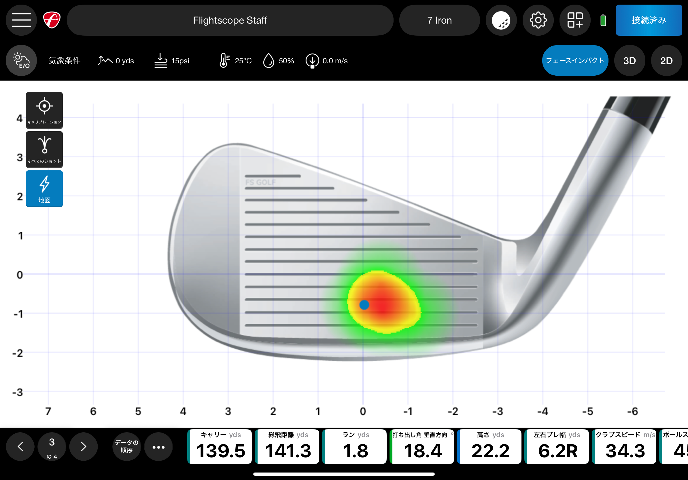 フェースのどの場所に当たったかをグラフィックで分かりやすく表示できるフェースインパクト