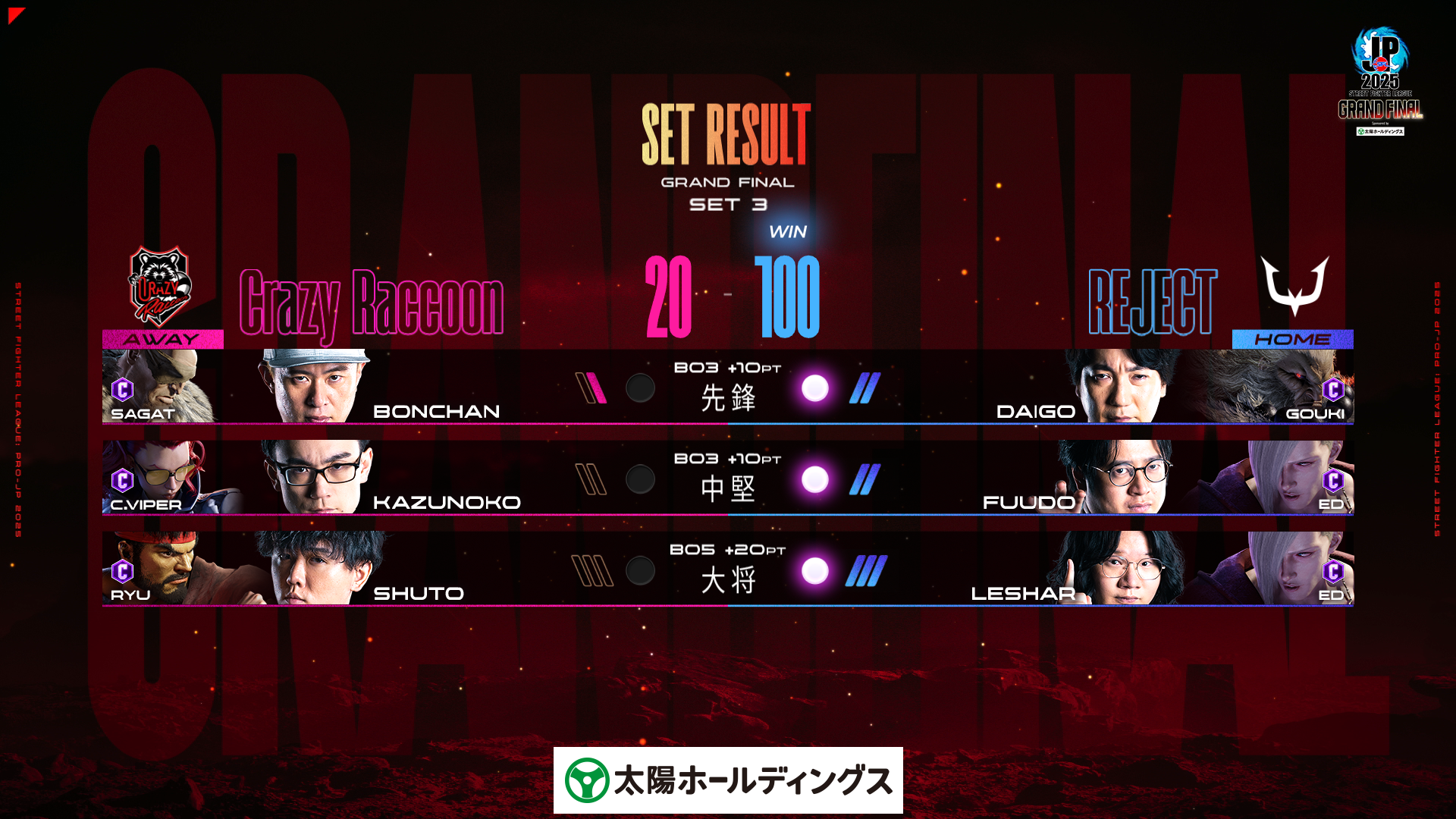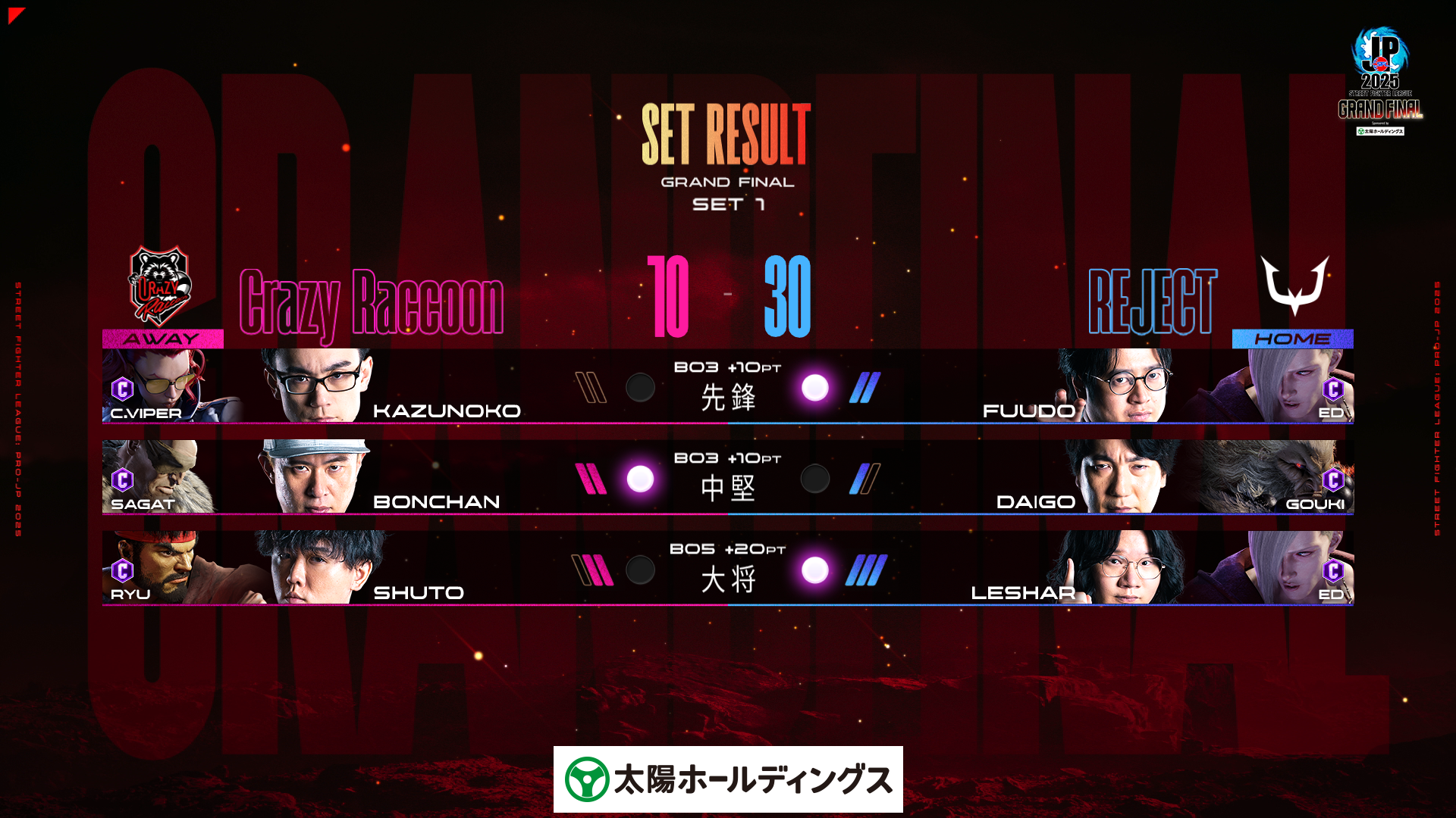 「ストリートファイターリーグ: Pro-JP 2025 グランドファイナル」優勝は「REJECT」