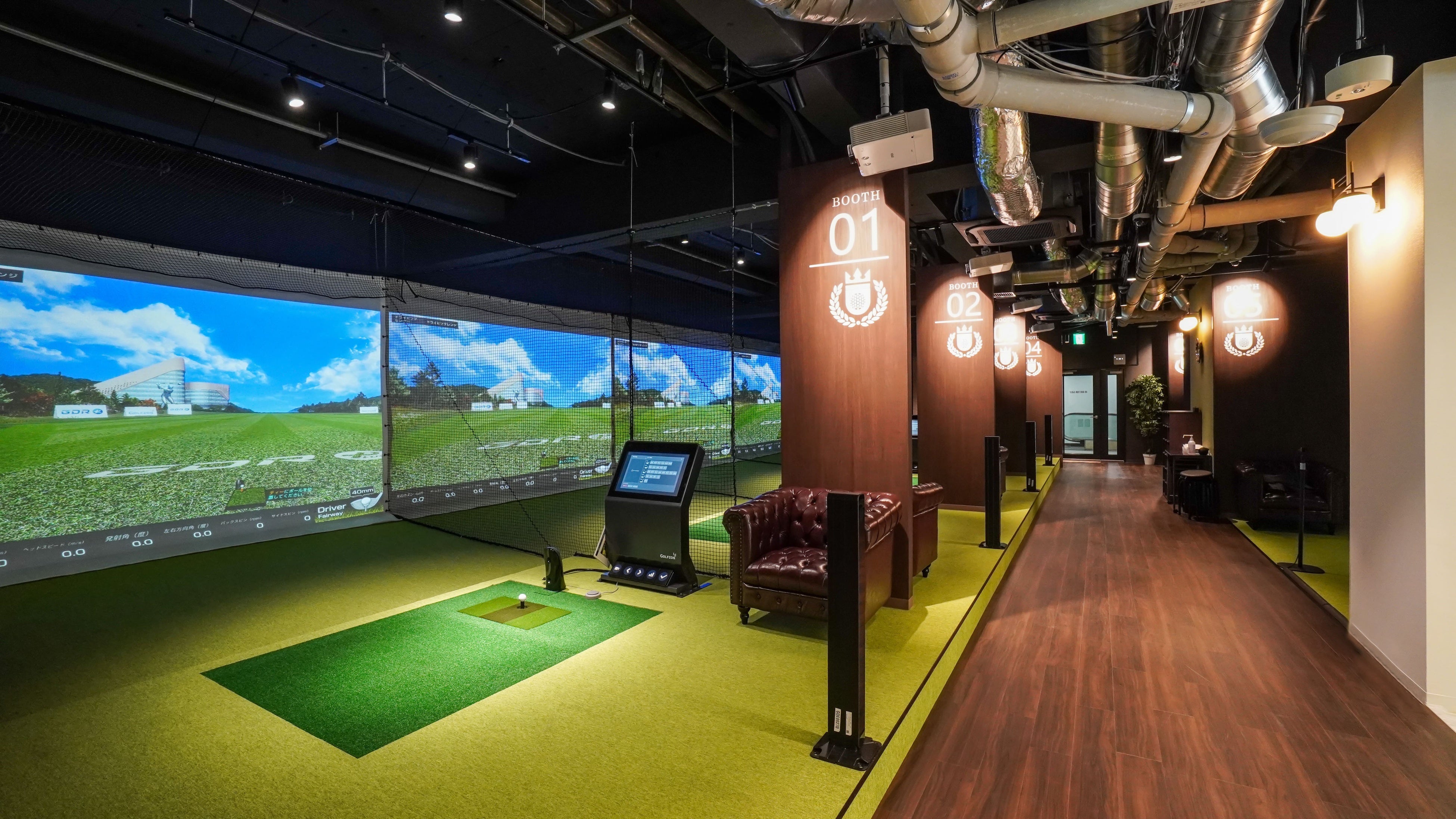 完全個室のVIPルームに最新シミュレーターを完備。実際のコースの傾斜を再現する可動式プレートにより、最大4名で本格的なバーチャルラウンドを楽しみながら練習いただけます。