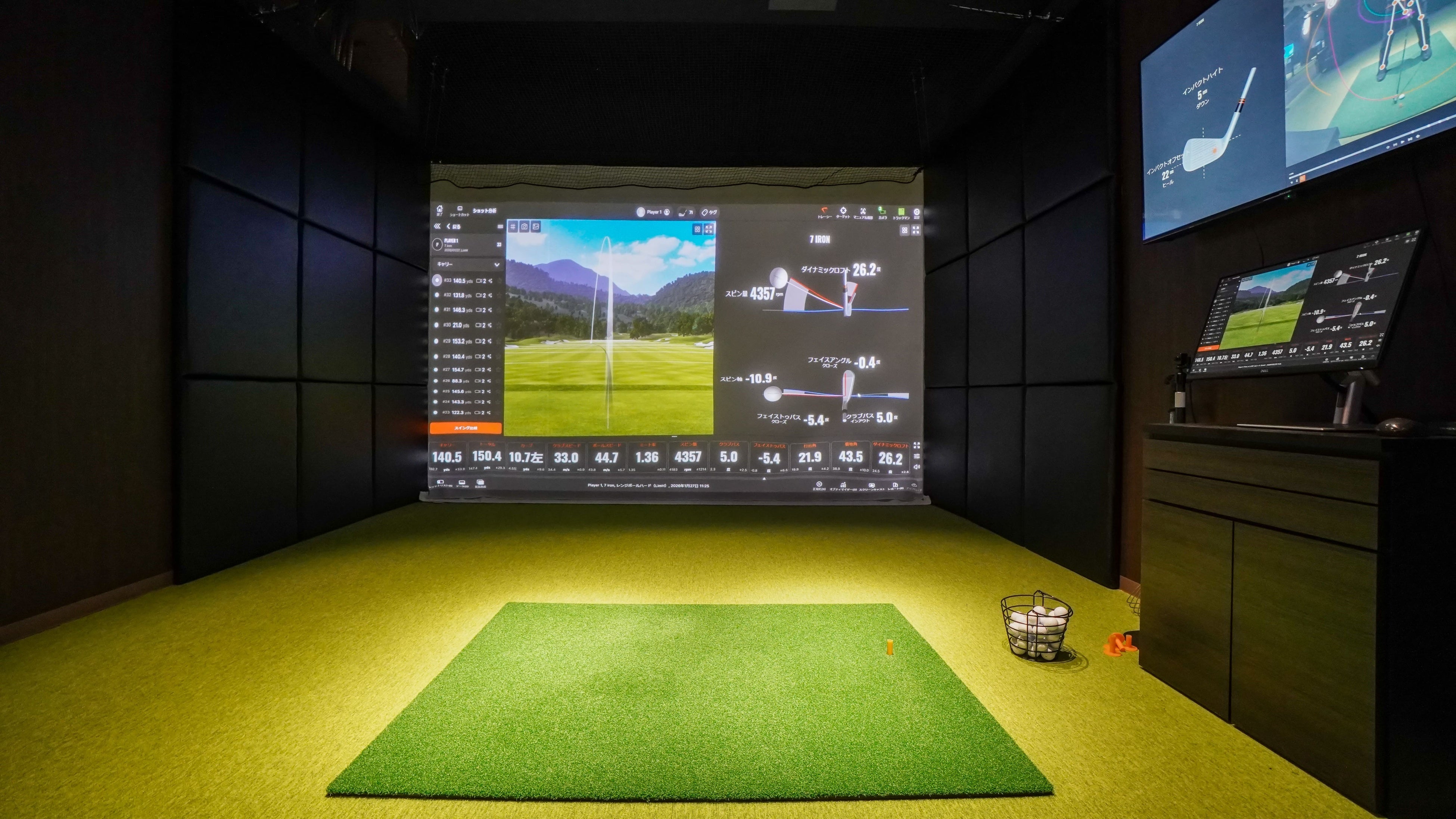 世界中のトッププロが信頼するTrackmanの最新インドアモデルです。インパクトの瞬間やスピン量などを科学的に分析。感覚を数値化することで、効率的なスイング改善を実現します。