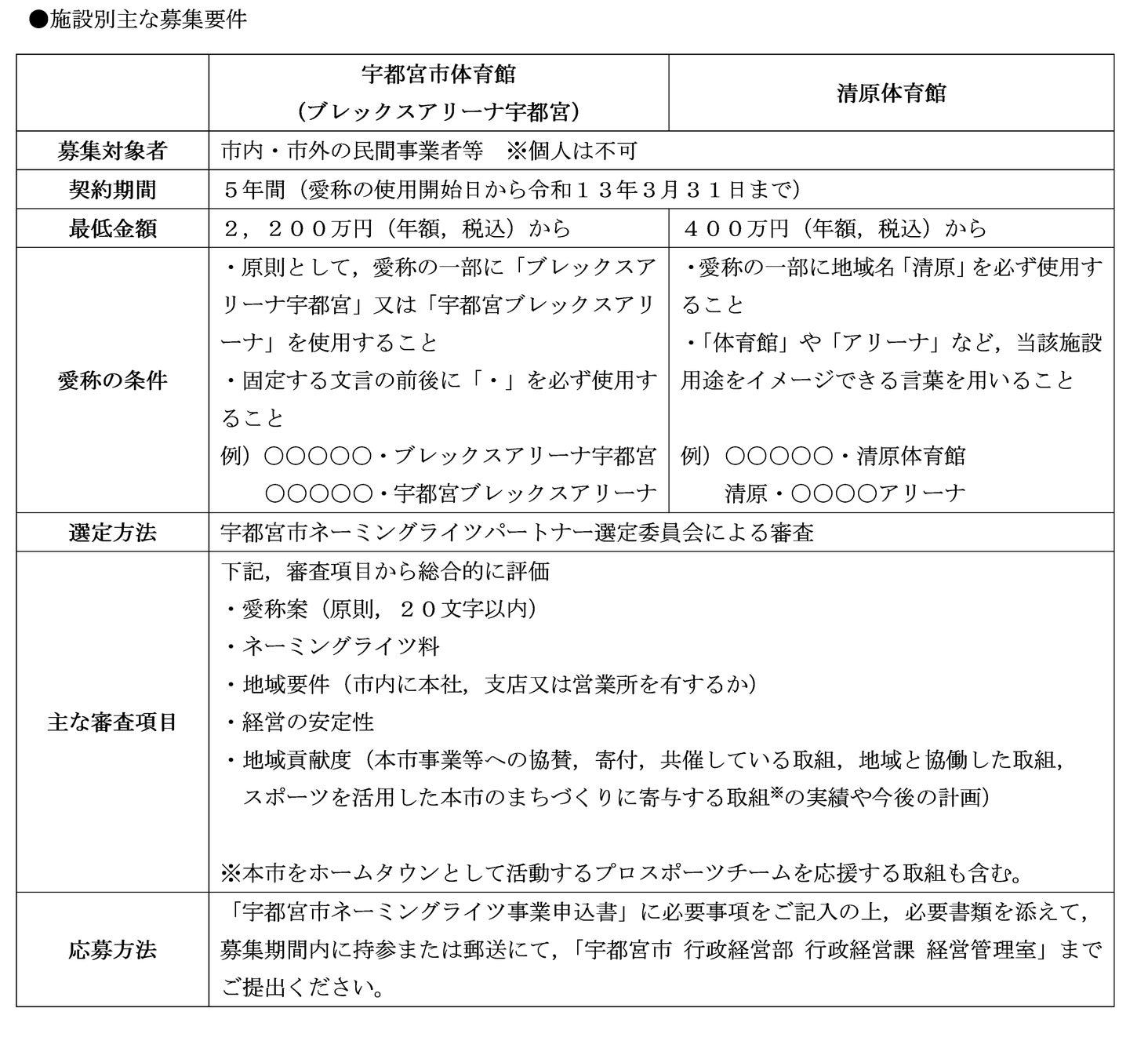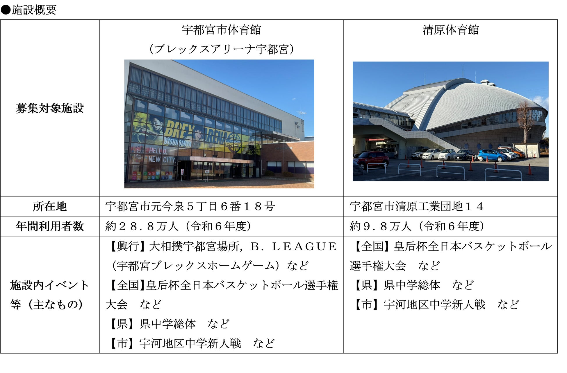 現在,「宇都宮市体育館(ブレックスアリーナ宇都宮)」と「清原体育館」を対象に,ネーミングライツパートナーを募集しています。募集期間は,令和8年2月27日(金曜日)17時まで。民間事業者等の皆様のご応募をお待ちしております。