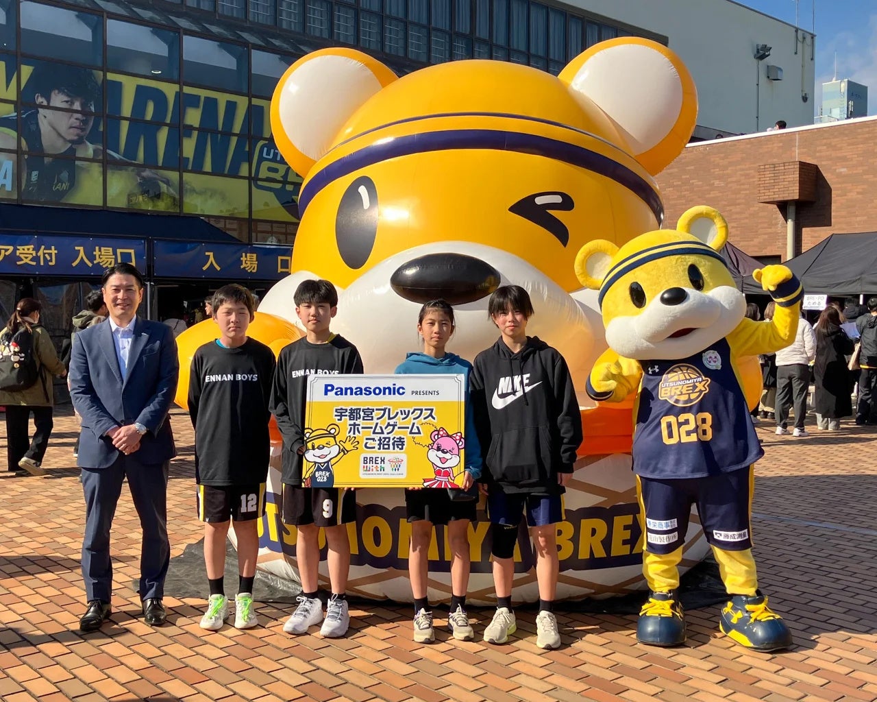 宇都宮ブレックスは、2月1日(日)にブレックスアリーナ宇都宮にて、持続可能な開発目標(SDGs)に取り組むプロジェクト「BREX with(ブレックス ウィズ)」の活動の一環として、「宇都宮ブレックス with パナソニック ホームゲーム招待」のチケット贈呈式を実施しました。