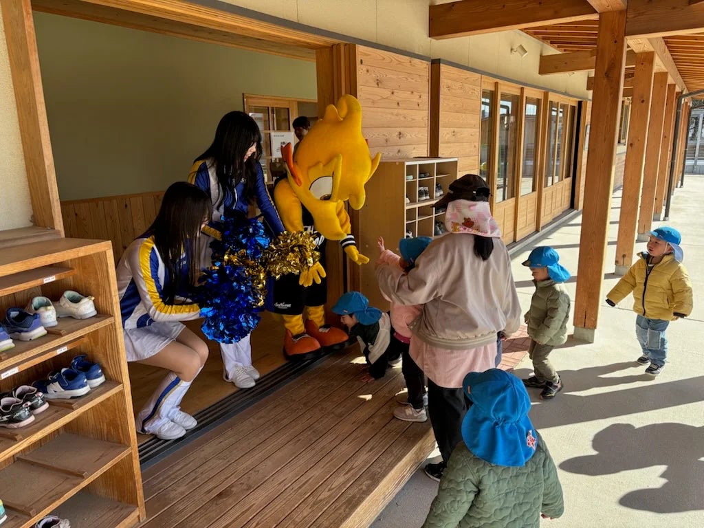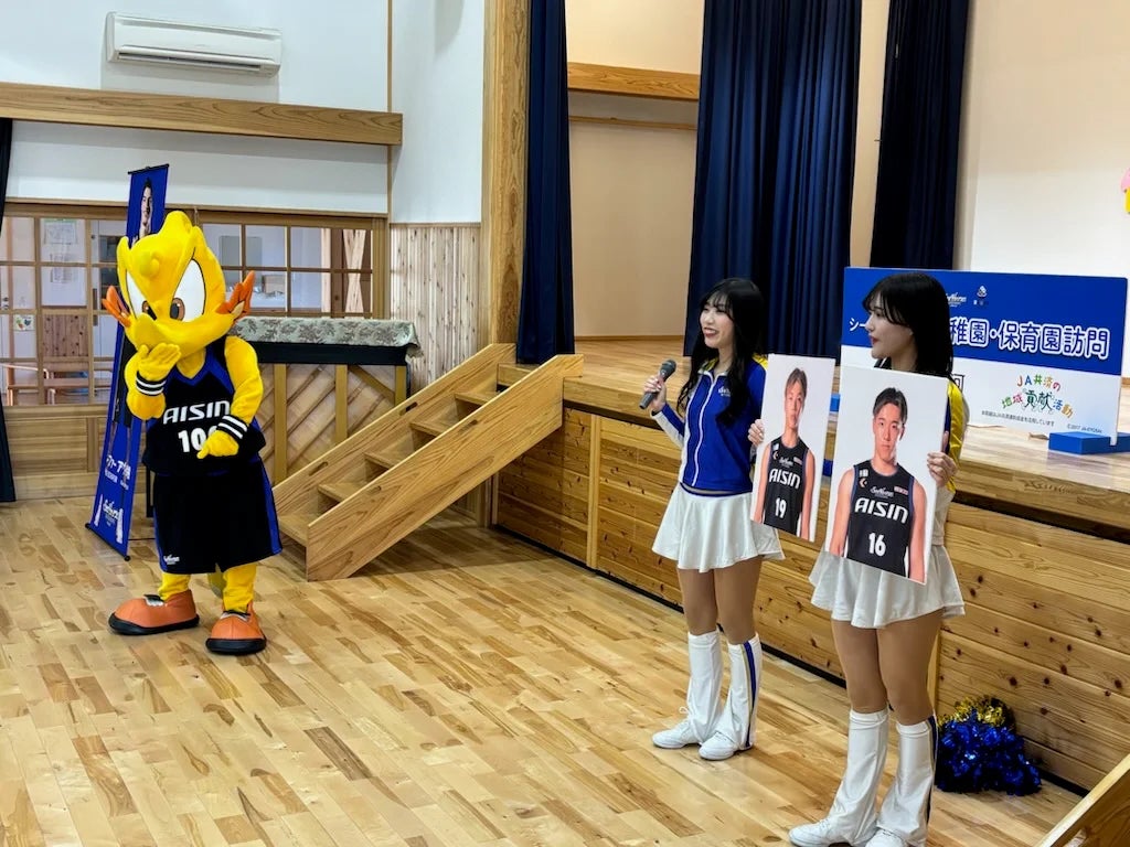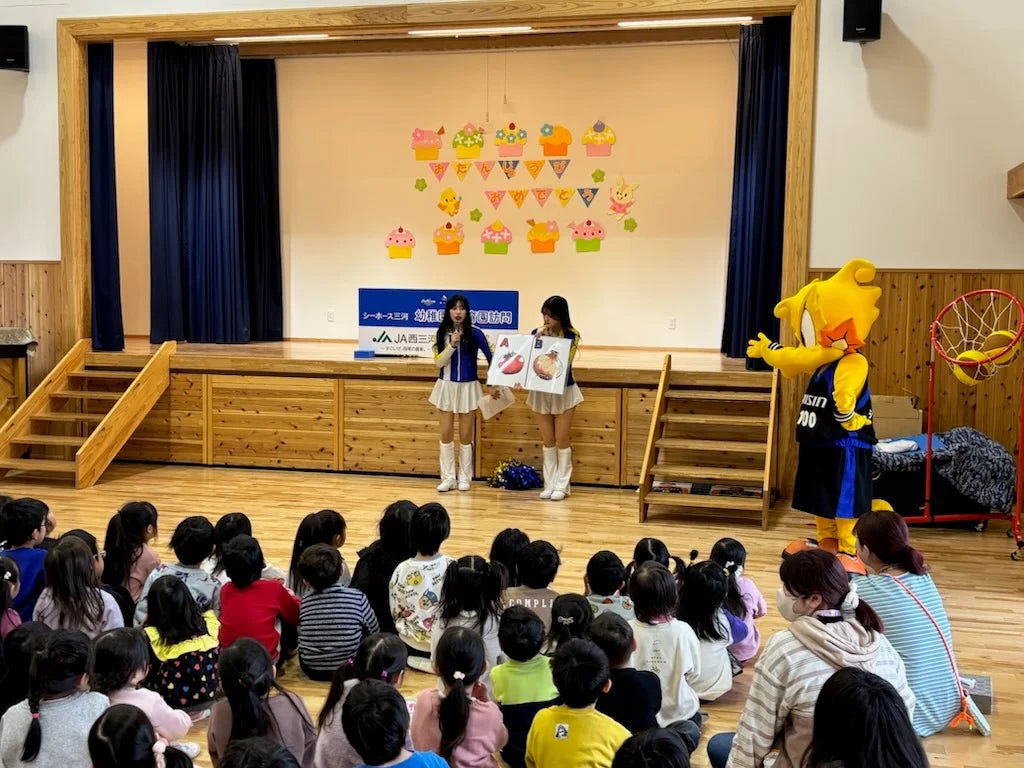 2026年1月19日(月)、シーホースくんとSuper GirlsのKAHO、MAHIRUがKIRARA保育園(西尾市)を訪問し、園児の皆さんと一緒にクイズやダンスを楽しみました。