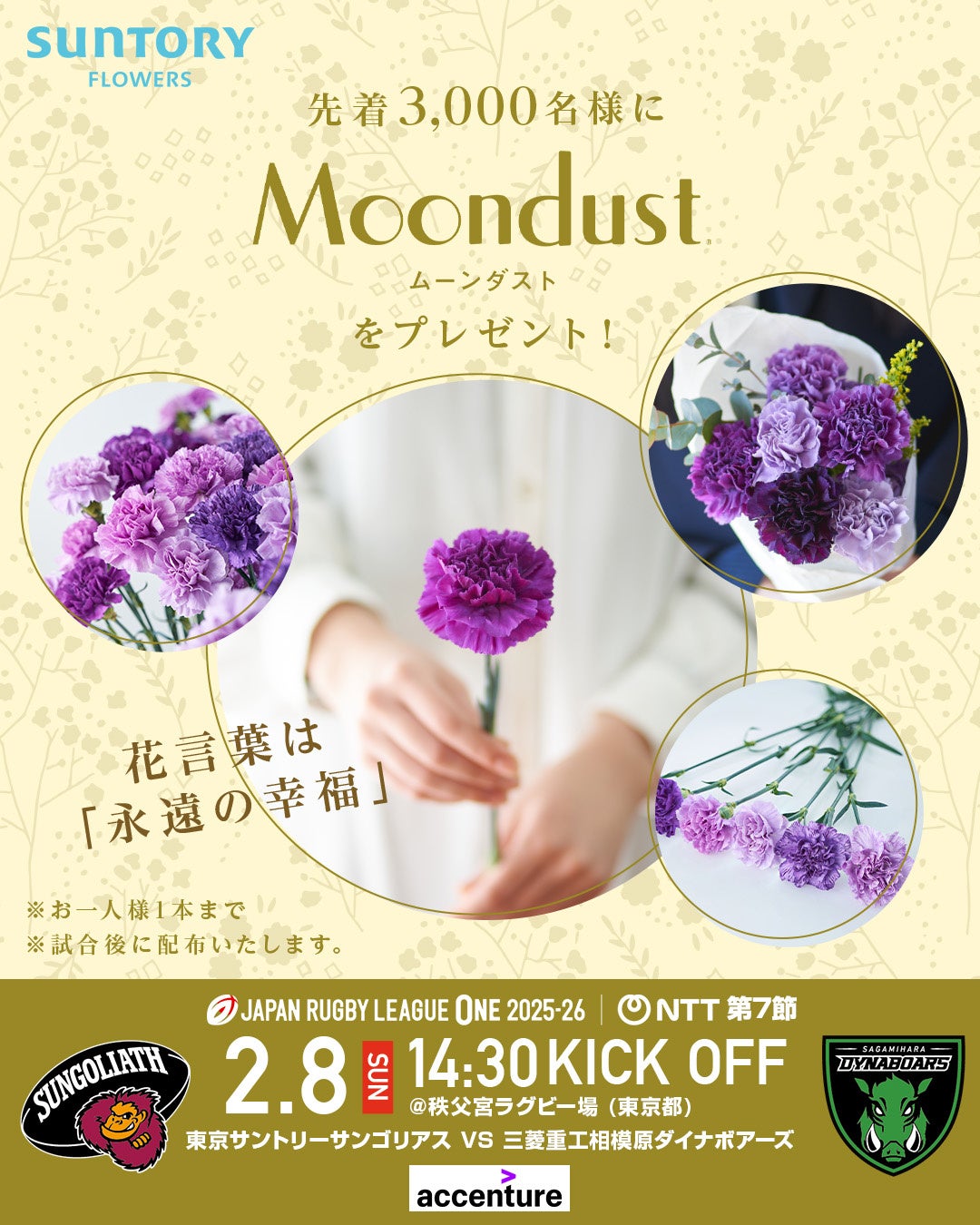 東京サントリーサンゴリアスは、2026年2月8日(日)開催のホストゲーム「NTT JAPAN RUGBY LEAGUE ONE 2025-26 第7節 三菱重工相模原ダイナボアーズ戦」を、アクセンチュア株式会社をマッチデーパートナーに迎え、『アクセンチュア マッチデー』として実施いたします。