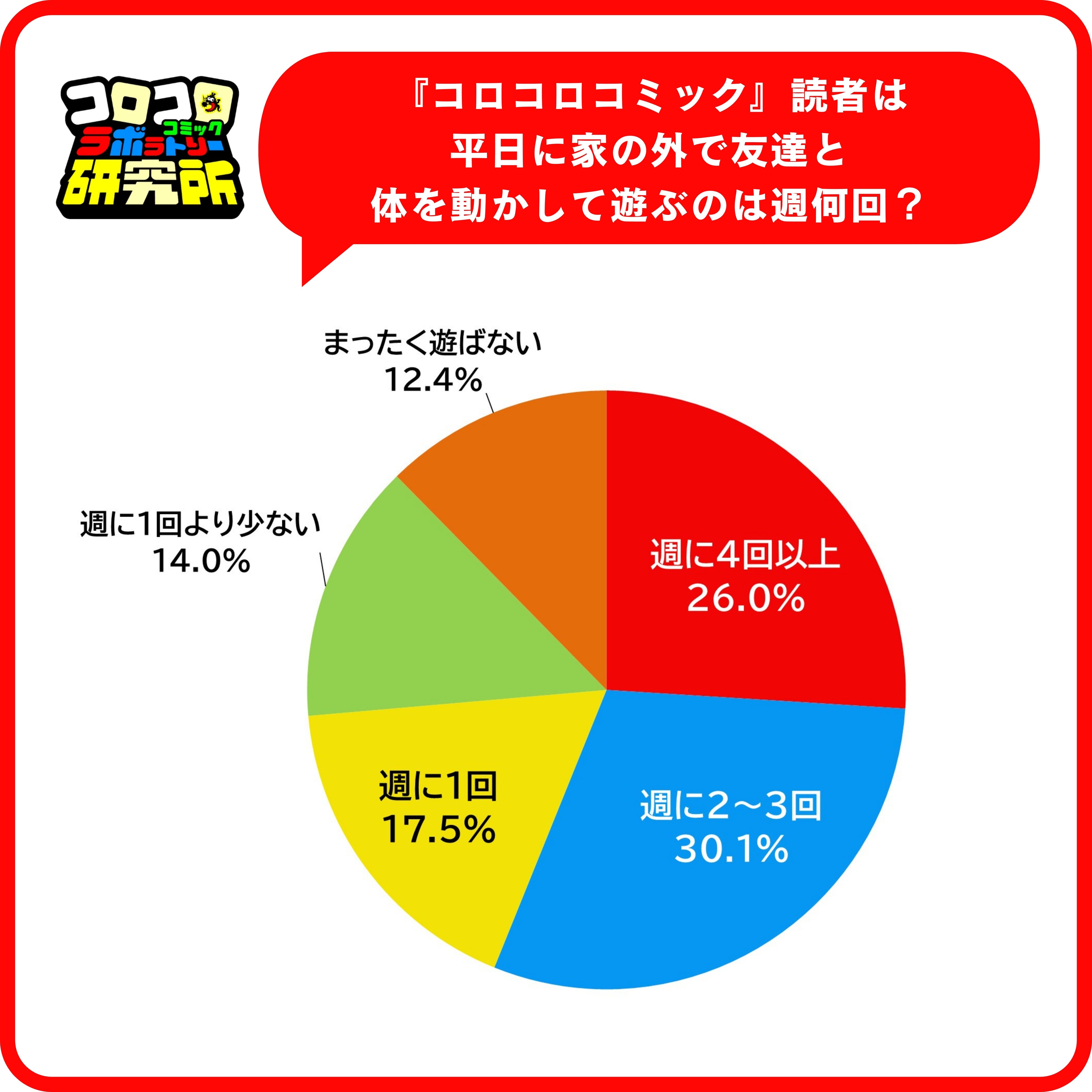 平日に外で遊ぶ頻度が「週に1回以下」の子は43.9% 一方「週4回以上」は26.0%に留まる