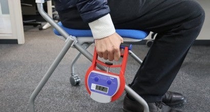 座った状態でまずは握力を測定し、その後手首にテーピングを巻いてから再度チャレンジ!2回目の握力が1回目を上回った先着100名の方に、アルティーリ千葉 × 本学コラボのオリジナルグッズをプレゼント!