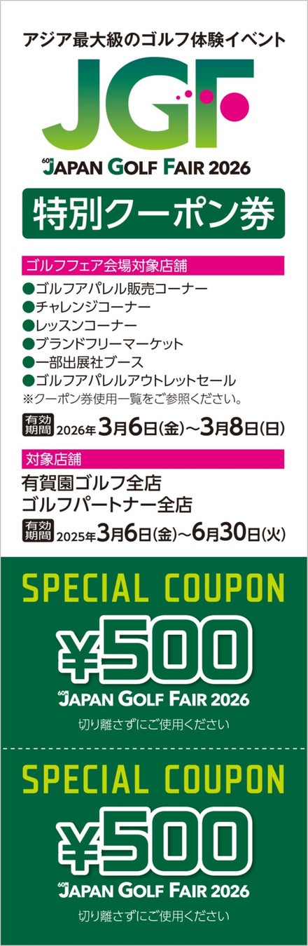 一般社団法人日本ゴルフ用品協会(略称:JGGA 会長:倉島隆夫)は、2026年3月6日(金)〜8日(日)の3日間、パシフィコ横浜にてアジア最大級のゴルフ体験イベント「JAPAN GOLF FAIR 2026」(以下「JGF2026」)を開催いたします。この度、本イベントの出展社が決定するとともに、開催60周年を象徴するスペシャルアンバサダーとして関根勤さん&関根麻里さんが就任いたしました。お二人には初日のオープニングイベントとしてトークセッションに登壇していただき、「JGF2026」の魅力を広く発信していただきます。