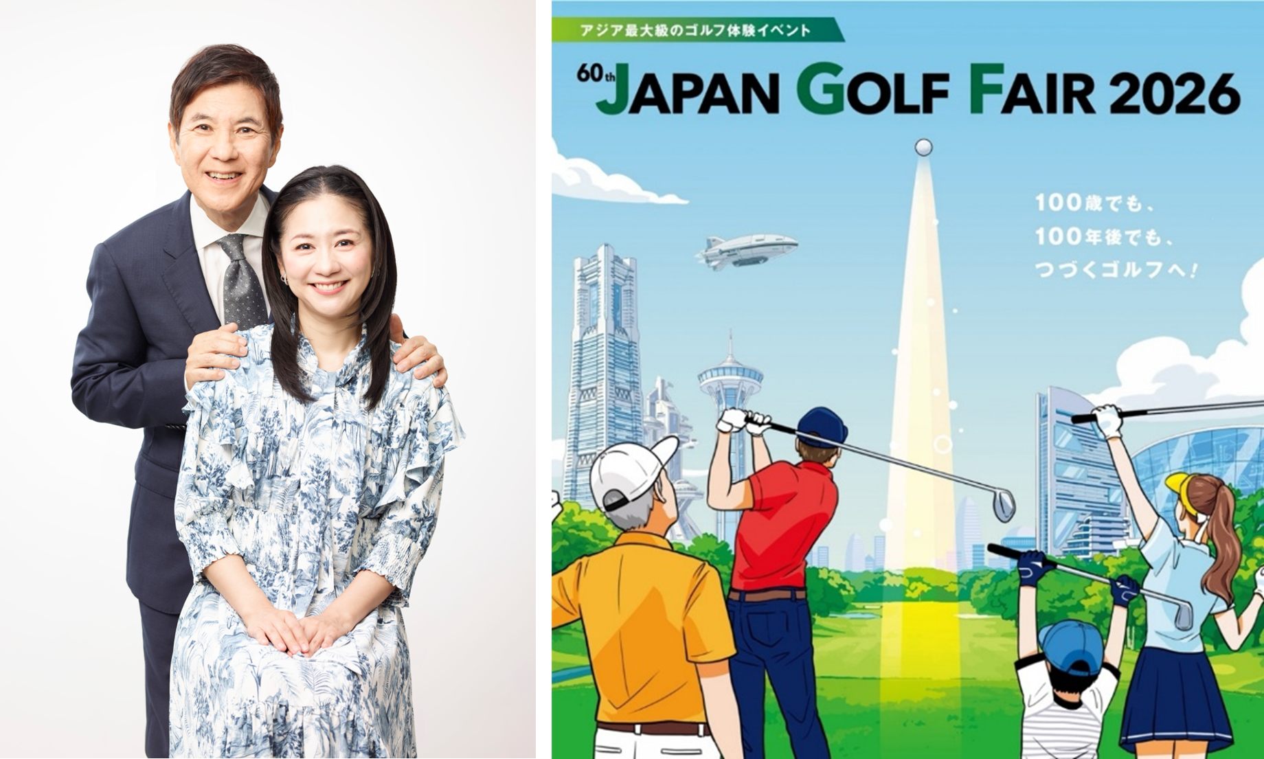 一般社団法人日本ゴルフ用品協会(略称:JGGA 会長:倉島隆夫)は、2026年3月6日(金)〜8日(日)の3日間、パシフィコ横浜にてアジア最大級のゴルフ体験イベント「JAPAN GOLF FAIR 2026」(以下「JGF2026」)を開催いたします。この度、本イベントの出展社が決定するとともに、開催60周年を象徴するスペシャルアンバサダーとして関根勤さん&関根麻里さんが就任いたしました。お二人には初日のオープニングイベントとしてトークセッションに登壇していただき、「JGF2026」の魅力を広く発信していただきます。