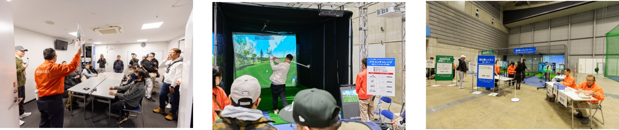 トーナメントコースを再現したシミュレーションゴルフを活用し、飛距離を競うドラコンチャレンジと