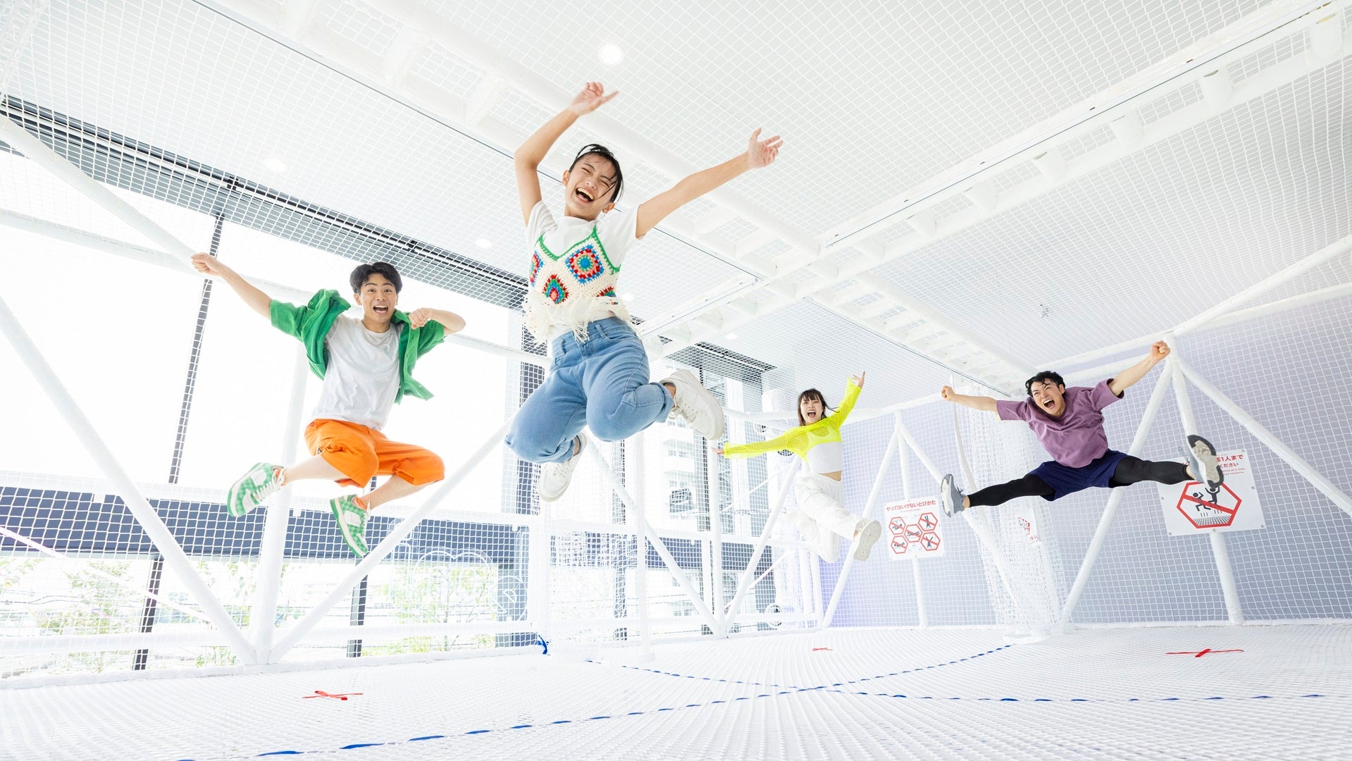『トンデミ』は「トランポリン」「クライミングウォール」「ロープウォーク」など人気のアクティビティを取りそろえた本格的な屋内アスレチック施設です。2017年4月に1号店のイオンモール幕張新都心店を開業以来、YouTubeやテレビ番組、SNSを中心にメディアでも話題で、天候に左右されず予定を決められる点も魅力の一つです。