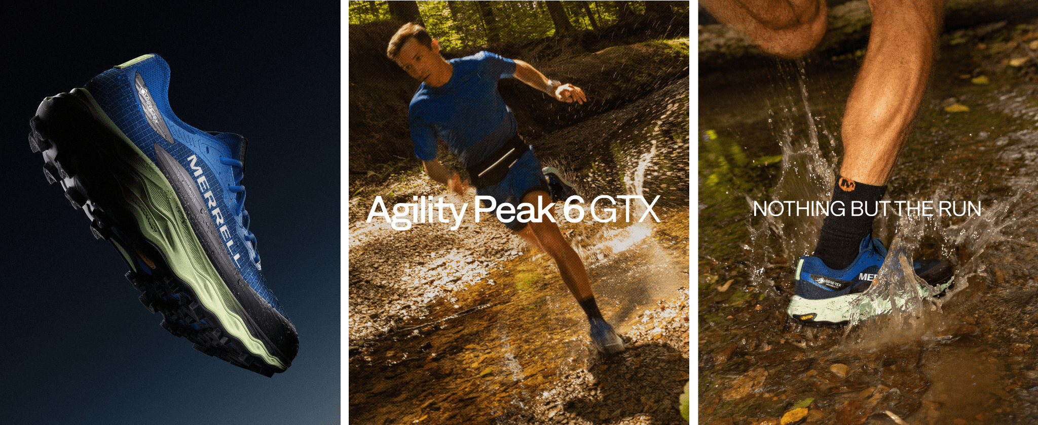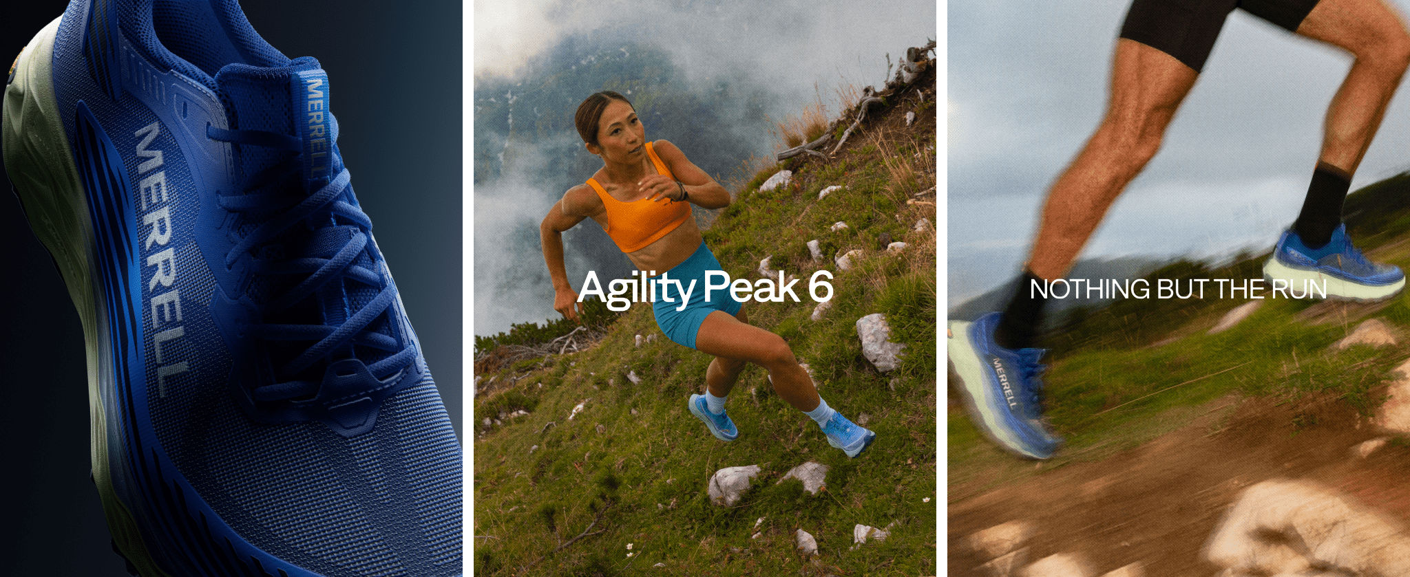「AGILITY PEAK 6」は、あらゆる距離やフィールドコンディションにおいてパフォーマンス性を最大化する高機能ソールユニットを搭載したMERRELLトレイルランニングシューズのアイコン「AGILITY PEAK (アジリティーピーク)」シリーズの最新モデルです。100km・100mileレースに対応する設計ベースで作られていることから、距離や経験値を問わず、あらゆるディスタンスカテゴリーに対応するバランスの取れたステータスと優れた機能性、履き心地を提供します。ウルトラディスタンス向けの“分厚いソール&非常に柔らかいクッション感”のようなものではなく、程よいクッション性と足裏の面安定感、圧倒的なグリップ力、軽快なフィット感を兼ね備えているため、オールインワンで活躍する“究極のオールラウンドモデル”と言えます。