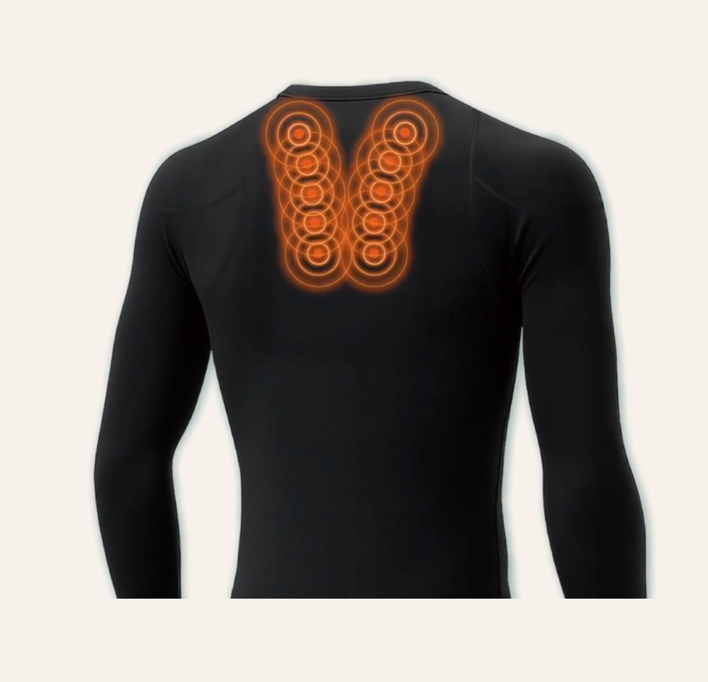 生地と一体化してあなたの身体に寄り添い、筋肉のこりをほぐして血行を促進し続けます。