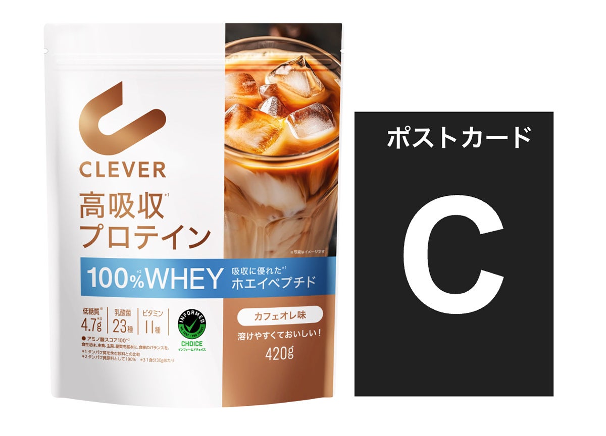 また、2026年2月14日(土)15日(日)に有明コロシアムにて開催される、大同生命SV.LEAGUE MEN 東京グレートベアーズ ホームゲーム ジェイテクトSTINGS愛知戦にて、柳田選手を起用した新キービジュアルの特設ブースで、新商品の『クレバー高吸収プロテイン』3フレーバーをひと足早く試飲できる展示を実施いたします。さらに、ブースで『クレバー高吸収プロテイン』をご購入いただくと、数量限定で柳田選手のポストカードをプレゼントいたします(全4種)。ぜひ会場にお越しいただき、クレバーの新商品を体験ください。