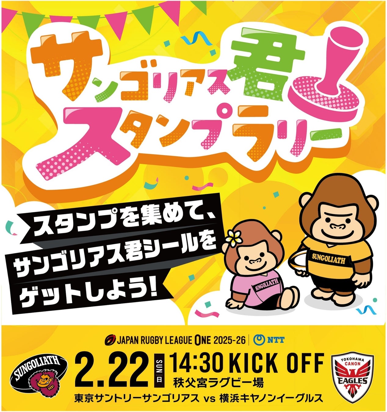 東京サントリーサンゴリアスは、2026年2月22日(日)開催のホストゲーム「NTT JAPAN RUGBY LEAGUE ONE 2025-26 第9節 横浜キヤノンイーグルス戦」を、東洋製罐グループをマッチデーパートナーに迎え、『東洋製罐グループプレゼンツ マッチデー』として実施いたします。