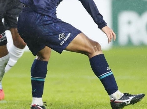 アビスパ福岡公式ユニフォームパンツ裏部分に、コーポレートロゴを掲出いただきました。