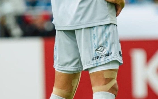 アビスパ福岡公式ユニフォームパンツ裏部分に、コーポレートロゴを掲出いただきました。