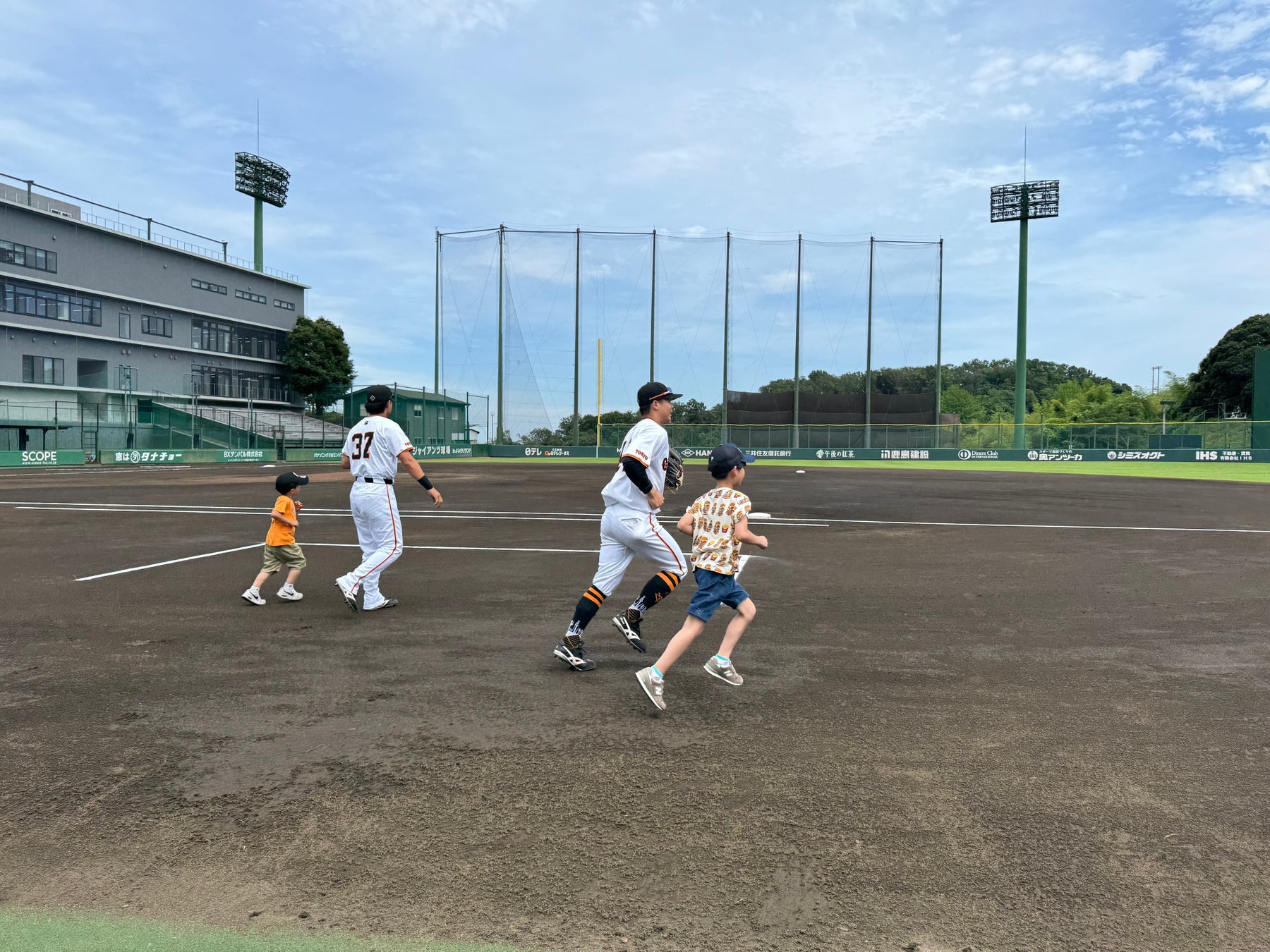 選手たちと一緒に守備につけます。