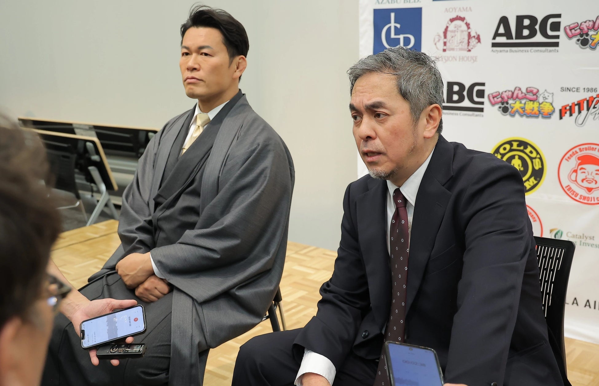 実は、K-1ジム・ウルフTEAM ASTERの高木会長から、昨日の深夜過ぎ、そして午前中に何度も連絡を取り合っていましたが、栃木から会見場へ向かう中で最後の水抜きが厳しいという連絡がありました」