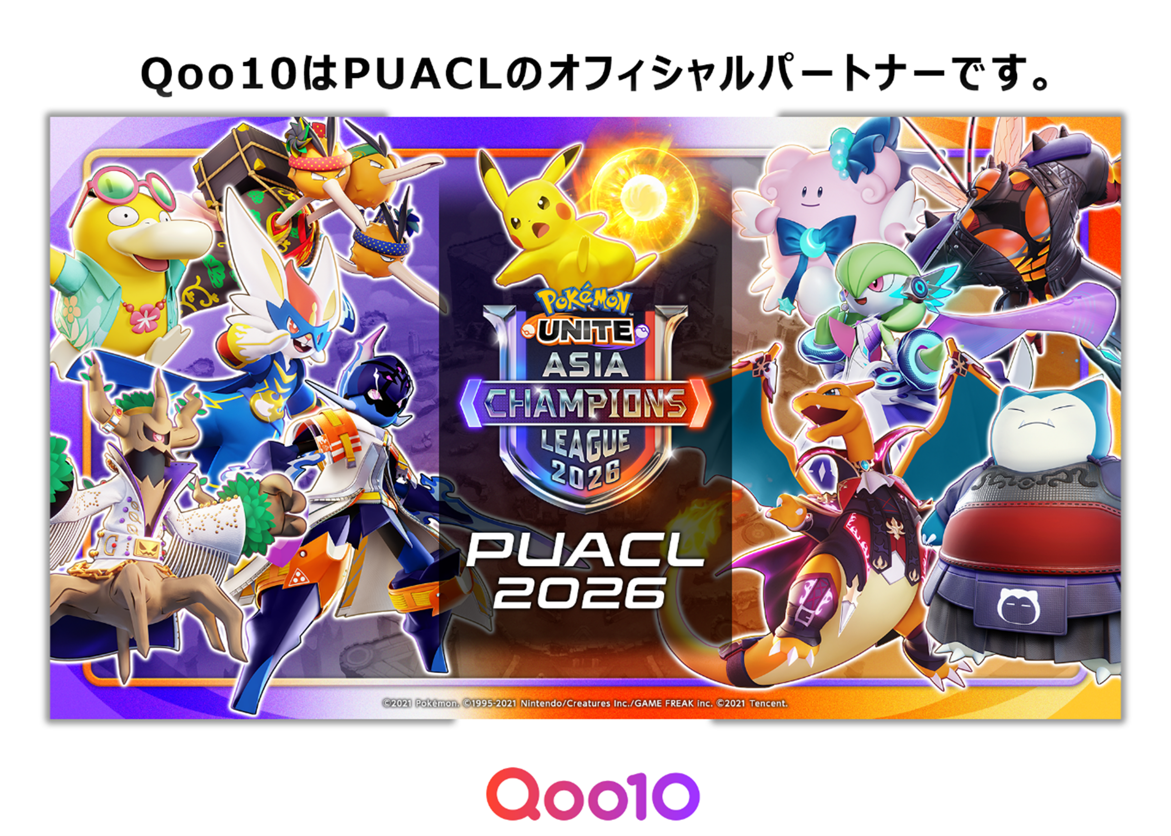 インターネット総合ショッピングモール「Qoo10(キューテン)」を運営するeBay Japan合同会社(本社:東京都港区、代表取締役:グ ジャヒョン)は、株式会社ポケモン(本社:東京都港区、代表取締役社長:石原 恒和)が主催する『Pokémon UNITE Asia Champions League 2026』(以下、略称「PUACL2026」)に協賛します。Qoo10がeスポーツのイベントに協賛するのは今回が初となります。