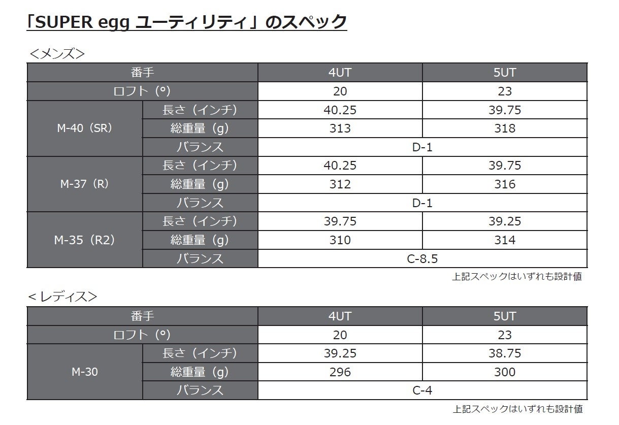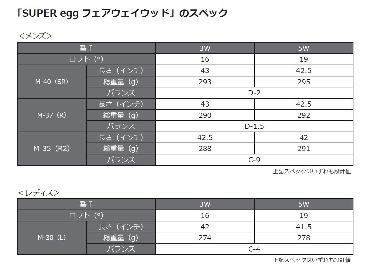 フェアウェイウッドは、直打ちギアとしてのやさしさを追求し従来品よりも大幅にシャロー化を図りながら、高強度マレージング(C300)カップフェースを限界まで薄肉化するなどの技術でドライバー級の高反発性能を可能にしました。さらに従来品より低深重心設計でボールのつかまりが良く、上がりやすいクラブとなっています。ユーティリティもヘッド厚を薄くしたシャロー形状で見た目のやさしさを持たせながら、高強度マレージング(C300)に高精度CNC加工を施した高反発専用となる偏肉フェースでルール適合外の高反発を実現させました。また、従来品より深重心化、大重心角化、大MOI化し、よりやさしさを進化させています。同時に発売する「SUPER eggドライバー」「SUPER eggボール」と同様、ゴルフを生涯楽しみたい、とにかく飛ばしたいといったゴルファーに向け、飛びの可能性を徹底追及したフェアウェイウッド、ユーティリティになっています。