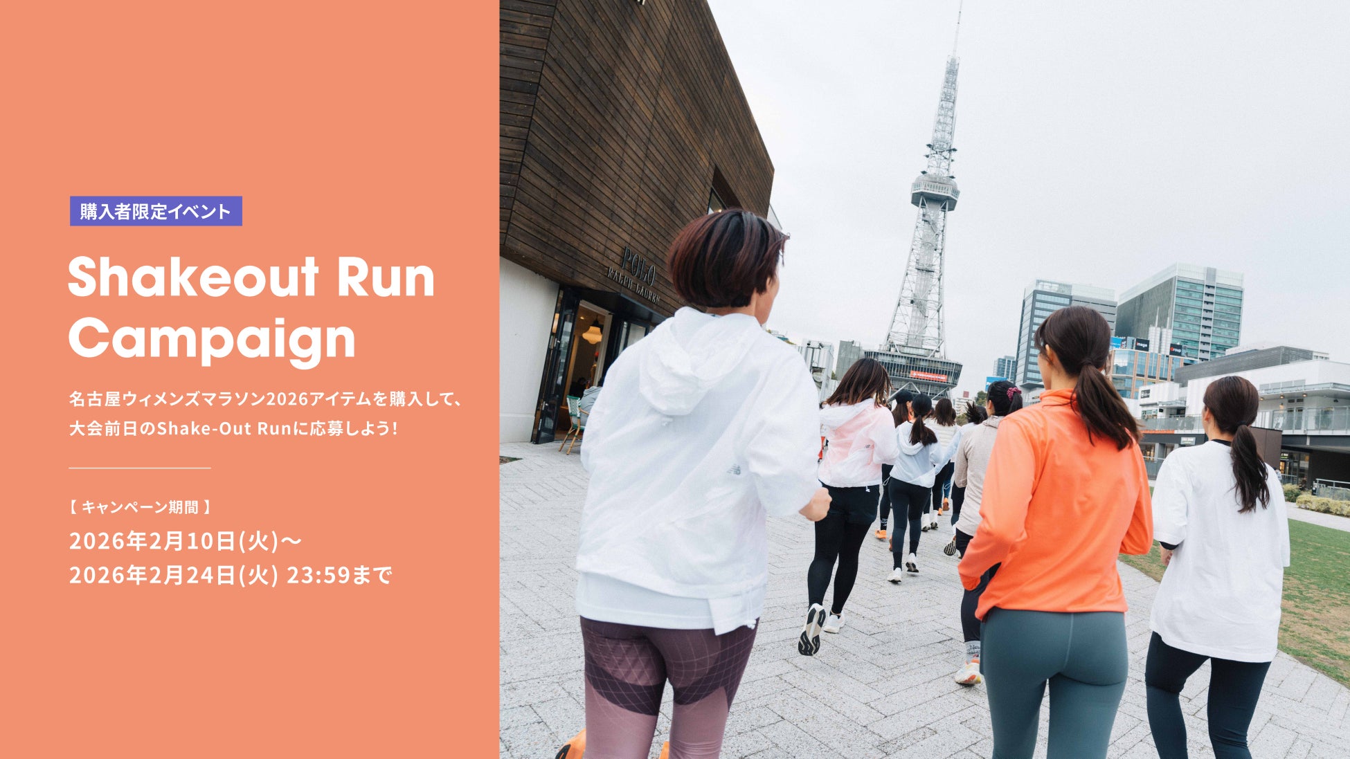 「名古屋ウィメンズマラソン 2026」限定アイテムをご購入いただいた方を、大会前日のスペシャルイベント「Shakeout Run」に抽選でご招待する『Shakeout Run Campaign』を開催いたします。『Shakeout Run』とは、頭や心を整理し雑念を払い、レースに向けた状態を整えるためのコンディショニングランです。コーチやゲストを招いて、レース前日に軽いランを行い、体を動かす感覚を確認しましょう。