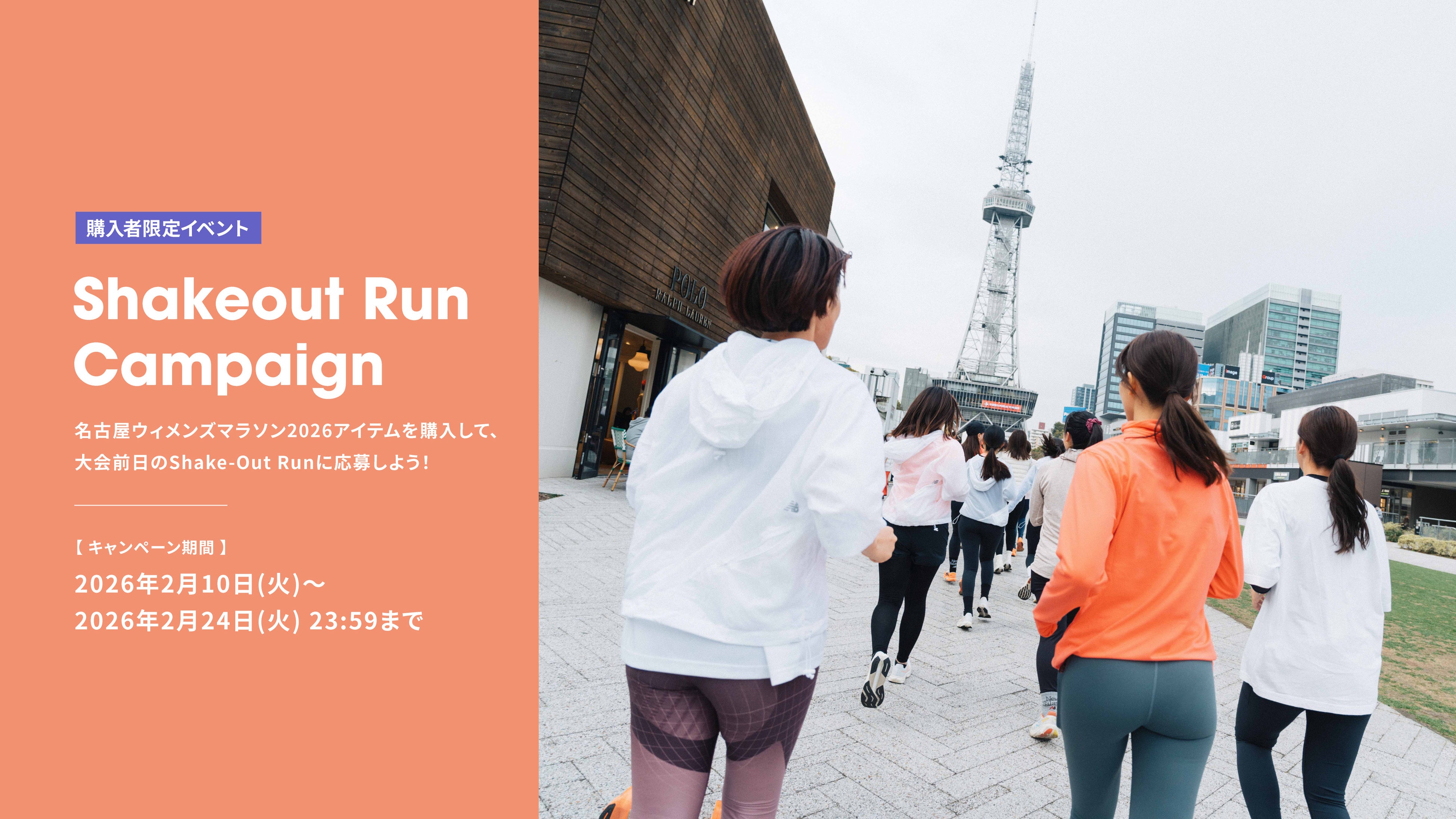 「名古屋ウィメンズマラソン 2026」限定アイテムをご購入いただいた方を、大会前日のスペシャルイベント「Shakeout Run」に抽選でご招待する『Shakeout Run Campaign』を開催いたします。『Shakeout Run』とは、頭や心を整理し雑念を払い、レースに向けた状態を整えるためのコンディショニングランです。コーチやゲストを招いて、レース前日に軽いランを行い、体を動かす感覚を確認しましょう。