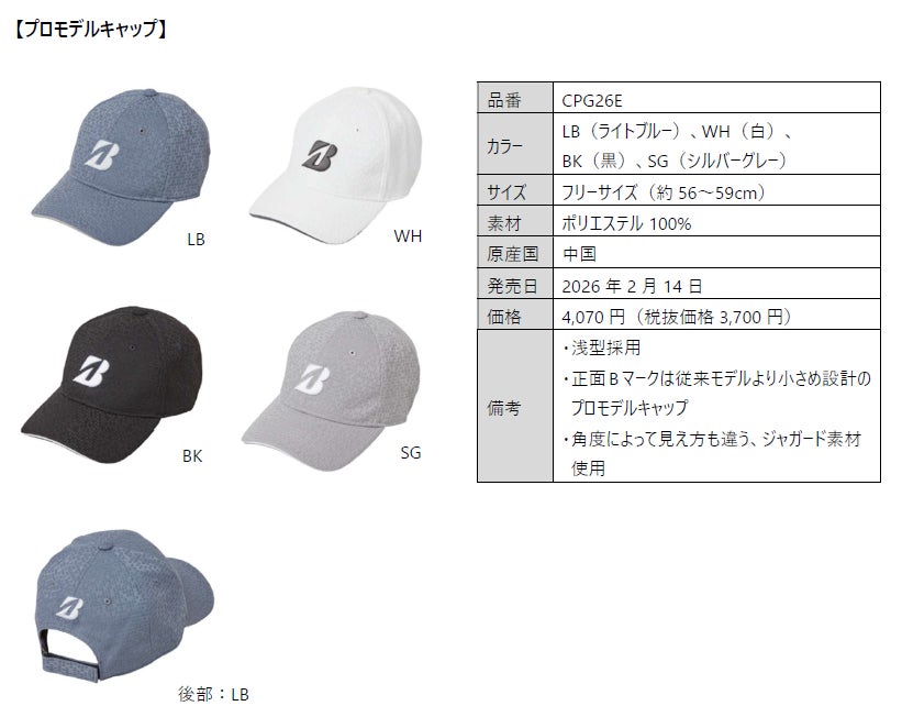 ブリヂストンスポーツ株式会社は、契約プロがツアーで着用するキャップ・バイザーのプロモデルシリーズを2月14日に発売します。価格は下記の商品概要に記載のとおりです。