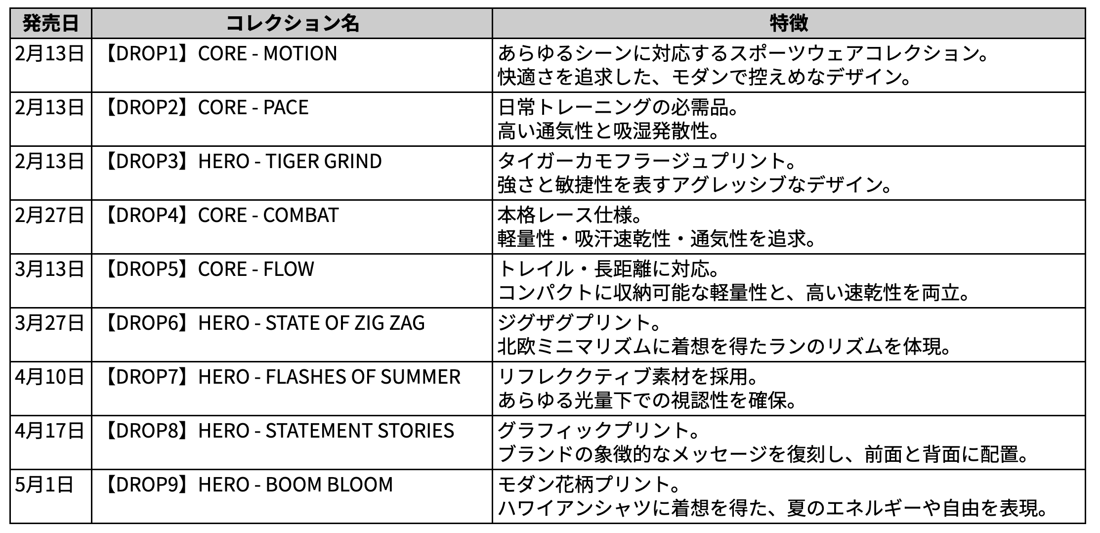 今季のテーマは、「AN ODE TO THE UNSPOKEN POETRY OF RUNNING(走ることに秘められた、語られざる詩への讃歌)」。ユニークなプリントと物語性を持つ「HERO」コレクションに加え、機能性を追求した「CORE」コレクションの2つのカテゴリーを軸に、5月にかけて全9ドロップを順次展開。第1弾から第3弾が同時発売となる初日は、ブランドのDNAを象徴する新作「TIGER GRIND(タイガー・グラインド)」が登場します。