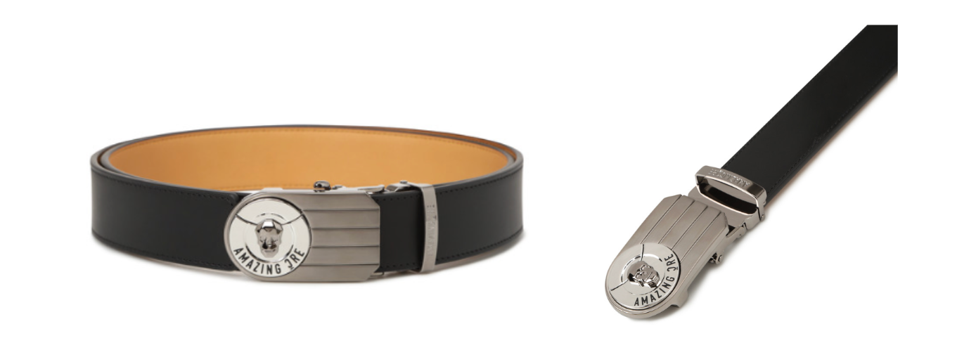 3Dスカルロゴ ALEXと5ストライプがデザインされた着脱可能なベルト。バックルがマグネットになっており、取り外してボールマーカーとして使用可能