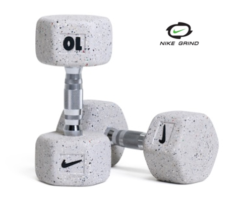 ナイキ グラインド ダンベルは、Nikeのフットウェア製造工程の副産物である Nike Grindラバーを体積比で少なくとも 20% 使用して作られています。