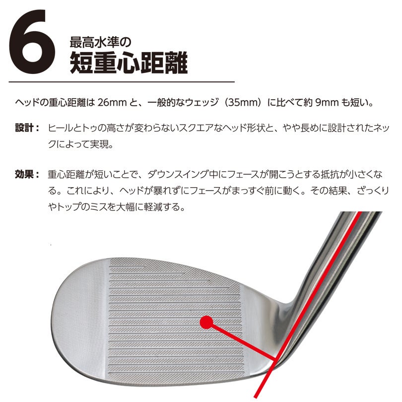 ヘッドの重心距離は26mm と、 一般的なウェッジ (35mm) に比べて約9mmも短い。
