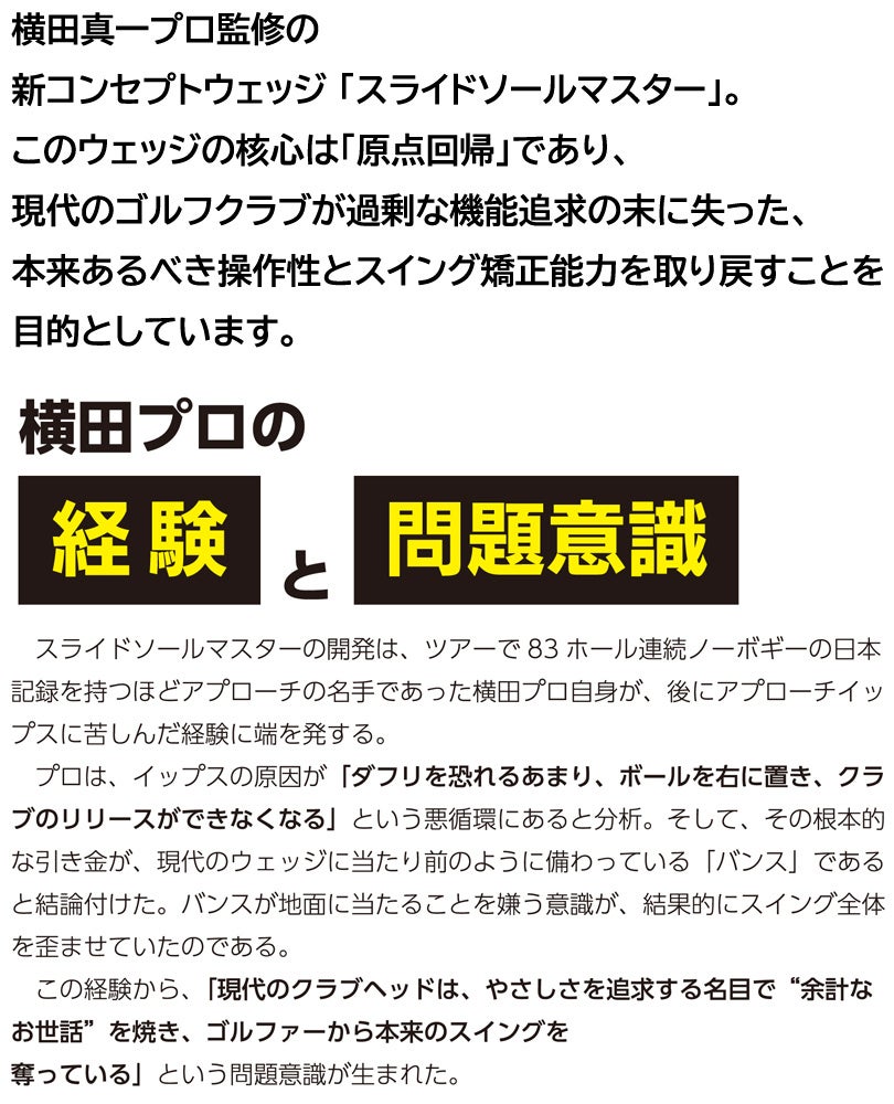 横田真一プロ監修の新コンセプトウェッジ 「スライドソールマスター」